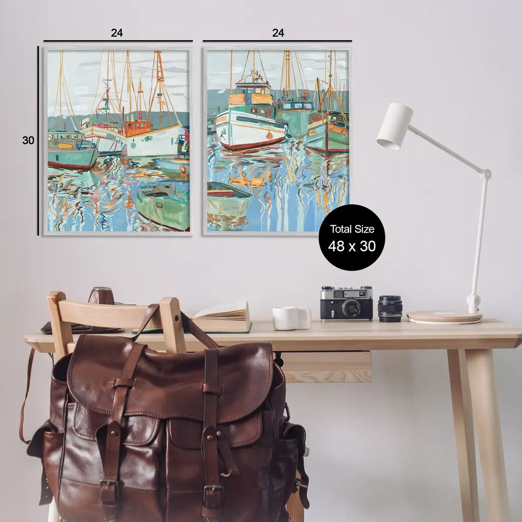 Fill any space in your home or office with our Framed Wall Art Sets. Our framed artwork is securely mounted into a 1.5-inch thick wood grain frame and ready to hang. Frames are available in three alluring styles: black, gray farmhouse and white. Stupell Wall Art is made in the USA.Features: Dimensions: 2 Piece Set, Each Panel is 11 x 1.5 x 14 FramedTwo Piece Framed Giclee Sets are available as 11"x14", 16"x20" or 24"x30" Panels. All Framed Giclee Products have a 1.5" Depth.Wall Art is Ready to Hang with Hardware Free Hanging. No installation required. For Easy Set Up Lean or Layer Artwork on Shelf or Against Wall.Curated Wall Art Sets make it easy for you complete the theme for any room. Our giclée prints are carefully mounted on a durable MDF backing, and then perfectly finished in a 1.5 inch thick woodgrain frame. Mounted frame colors include black, gray farmhouse and white. Made In USA.Artwork Relates To: Boat, Water, Waterfront, Dinghy, Watercraft, Beach, Lake, Ocean, Coastal, Nautical, Abstract, Modern, MaritimeDesign by Melissa Wang