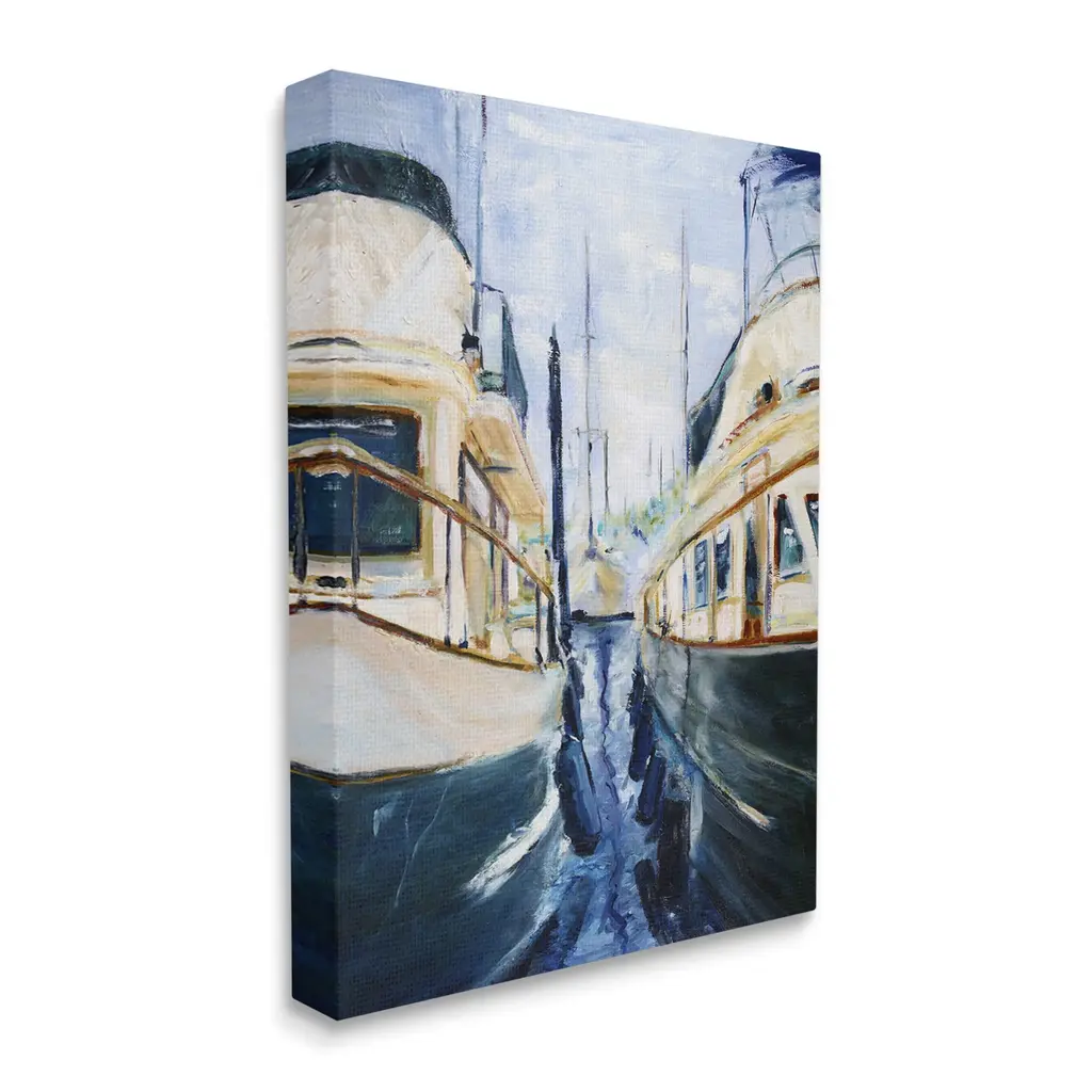 Stupell Marine Harbor Docked Boats Canvas Wall Art By Curt Crain - 24 X 30