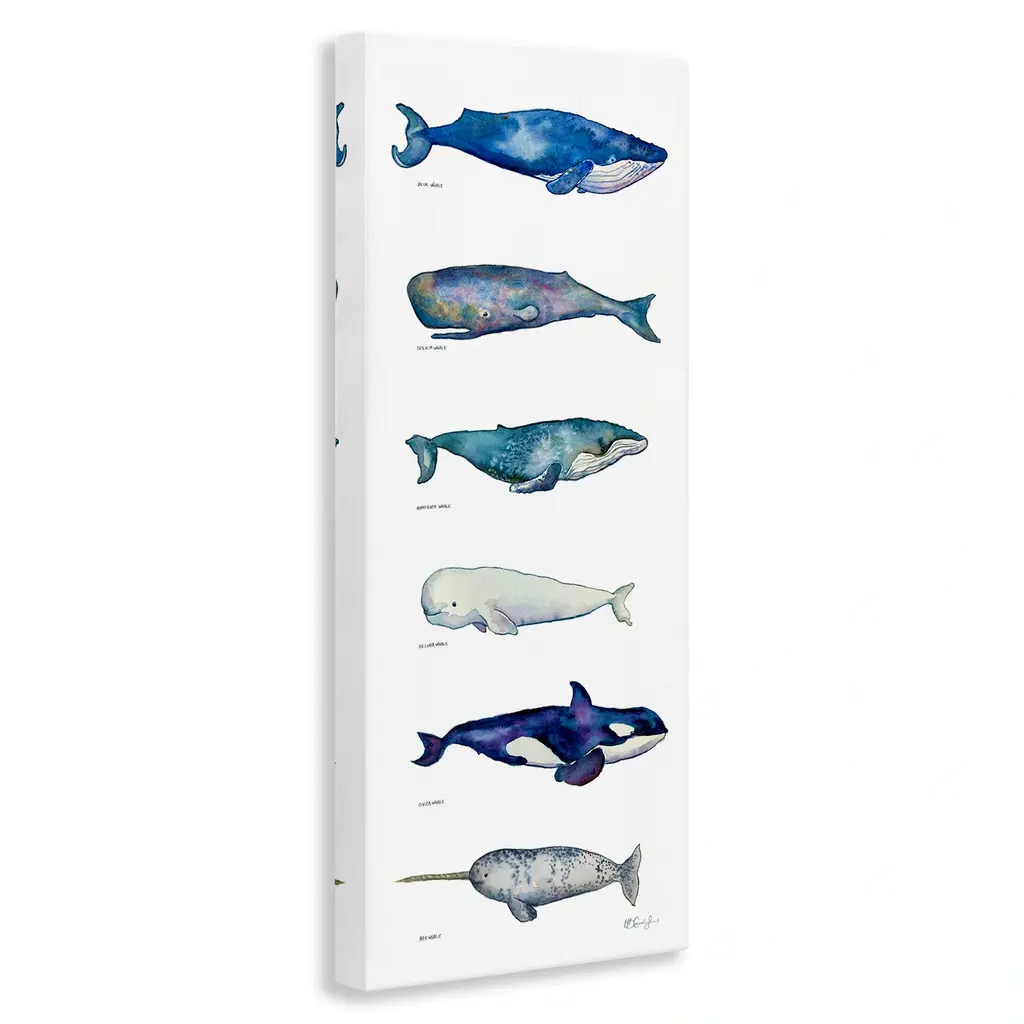 Stupell Maritime Sea Life Ocean Whales Narwhal Chart Diagram Canvas Wall Art - 10 X 24