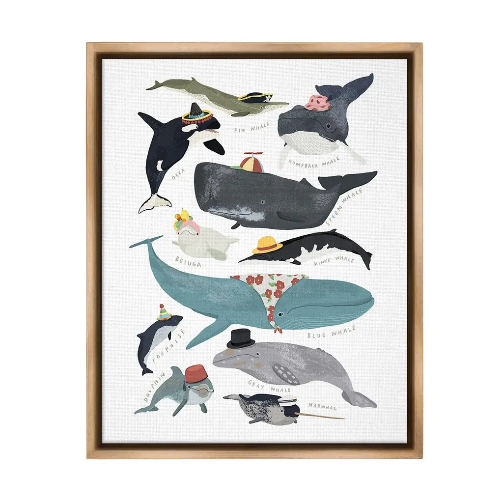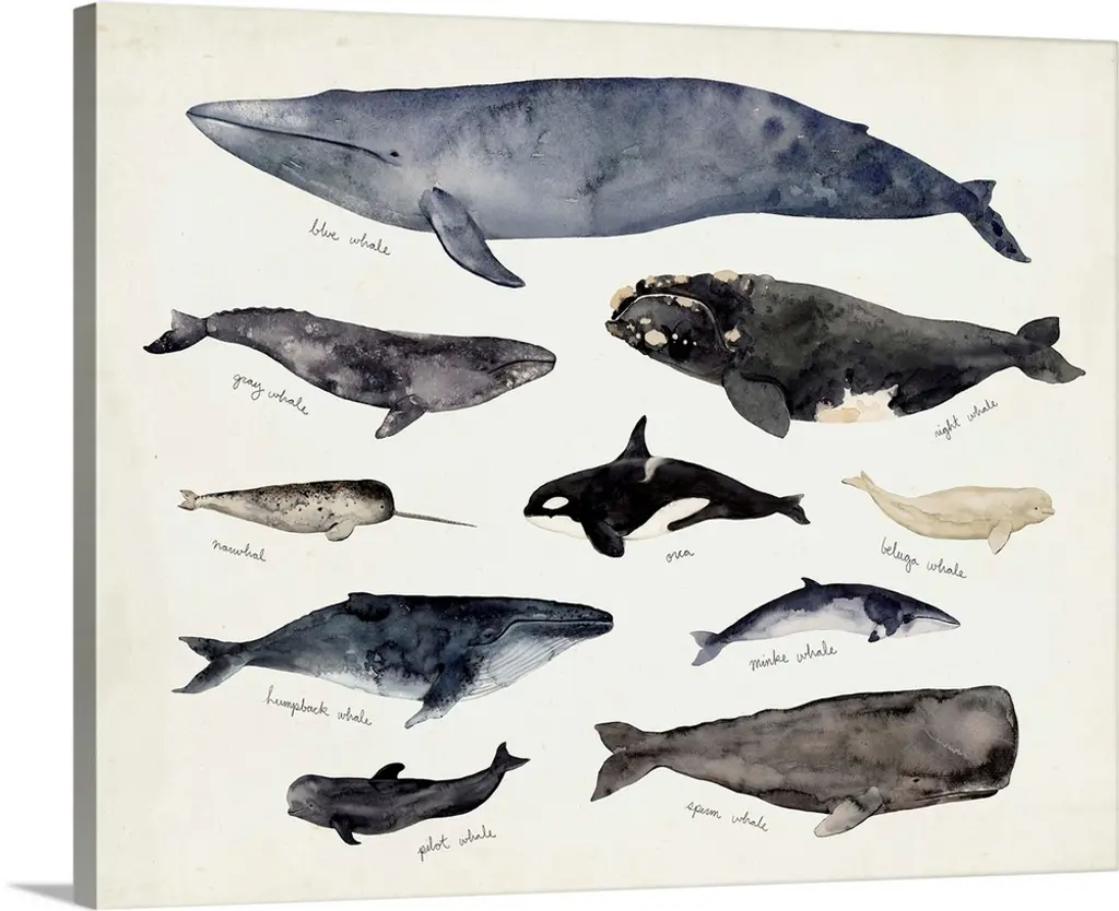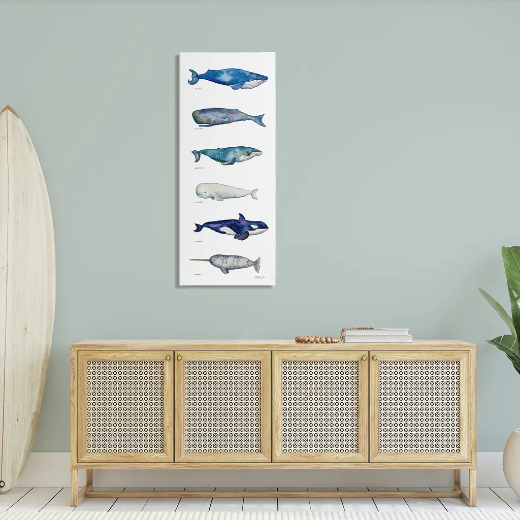 Stupell Maritime Sea Life Ocean Whales Narwhal Chart Diagram Canvas Wall Art - 20 X 48