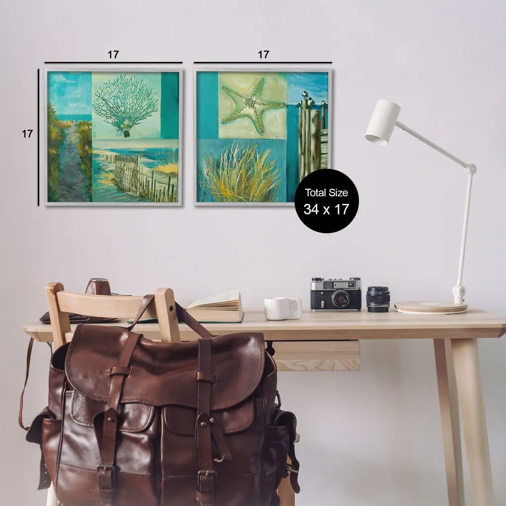 Fill any space in your home or office with our Framed Wall Art Sets. Our framed artwork is securely mounted into a 1.5-inch thick wood grain frame and ready to hang. Frames are available in three alluring styles: black, gray farmhouse and white. Stupell Wall Art is made in the USA.Features: Dimensions: 2 Piece Set, Each Panel is 12 x 1.5 x 12 FramedTwo Piece Framed Giclee Sets are available as 12"x12", 17"x17" or 24"x24" Panels. All Framed giclee Products have a 1.5" Depth.Wall Art is Ready to Hang with Hardware Free Hanging. No installation required. For Easy Set Up Lean or Layer Artwork on Shelf or Against Wall.Curated Wall Art Sets make it easy for you complete the theme for any room. Our giclée prints are carefully mounted on a durable MDF backing, and then perfectly finished in a 1.5 inch thick woodgrain frame. Mounted frame colors include black, gray farmhouse and white. Made In USA.Artwork Relates To: Fence, Water, Nature, Plant, Modern, Beach, Nautical, Summer, Collage, Coral, Sea Life, StarfishDesign by Liz Jardine