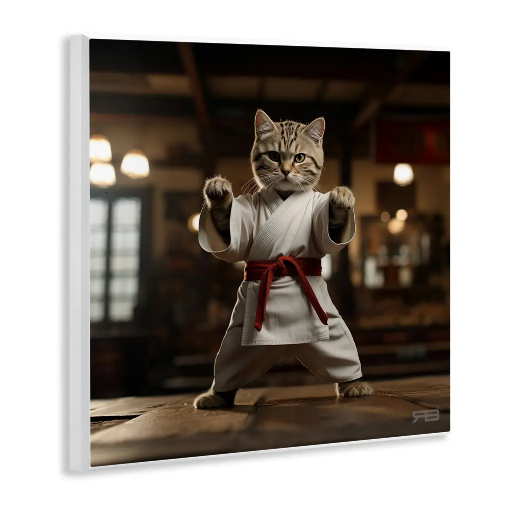 Our wall plaques start as high-quality lithograph prints mounted on durable 0.5-inch thick MDF wood. Each piece is hand finished and comes with a fresh layer of white foil on the sides to give it a crisp, clean look. Plaques arrive ready to hang without installation and come with removable plastic corners to keep them from damage in transit. Stupell Wall Art is made in the USA.Features: Dimensions: 12 x 0.5 x 12 InchesWall Art is Ready to Hang with Hardware Free Hanging. No installation required. For Easy Set Up Lean or Layer Artwork on Shelf or Against Wall.All of our wall plaques start off as high quality lithograph prints that are then mounted on durable 0.5 inch thick MDF wood. Each piece is hand finished and comes with a fresh layer of foil on the sides to give it a crisp clean look. Made In USA.Artwork Relates To: Martial Arts, Sport, Karate, Animal, Cat, Mammal, Pet, Judo, Kitten, ExerciseDesign by Roozbeh Bahramali