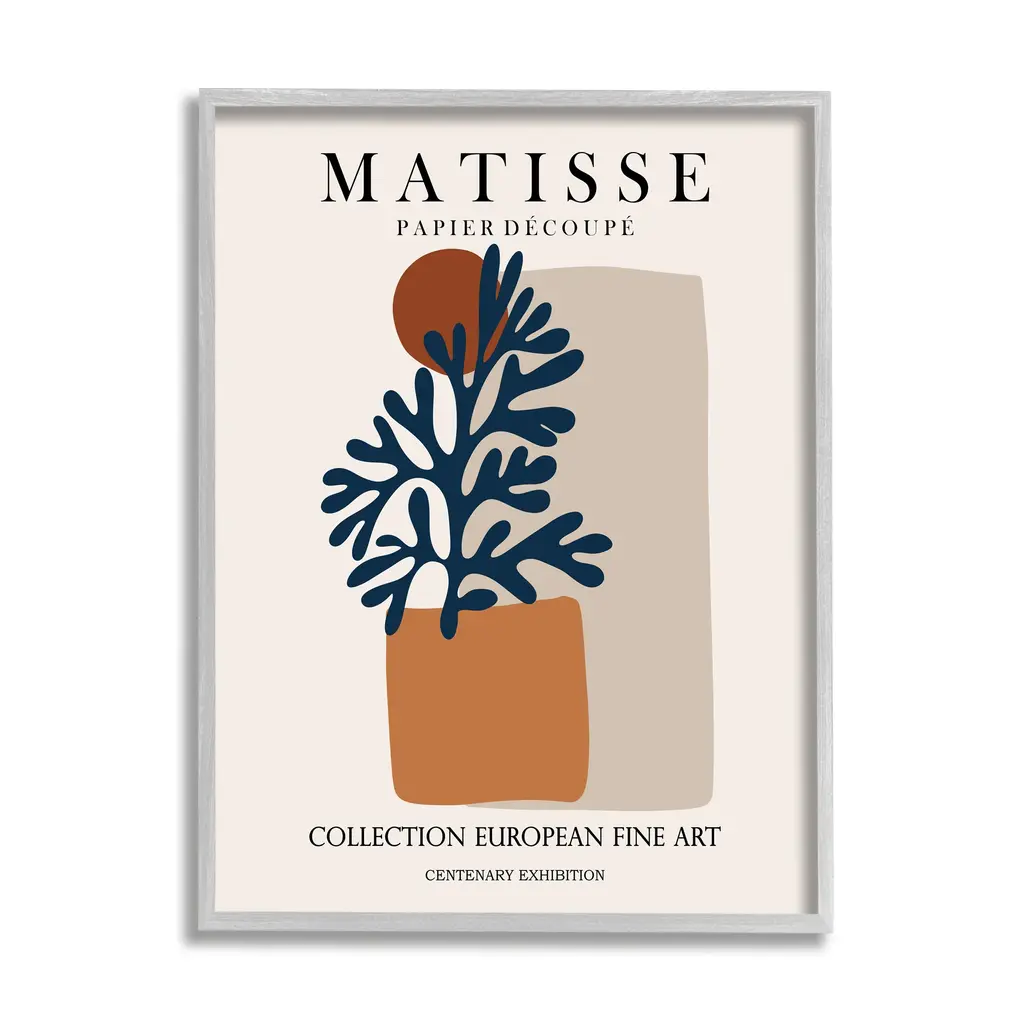 Stupell Matisse Leaves Foliage Abstract Silhouette Exhibition Design Framed Wall Art - Off-White - 24 X 30 - Grey
