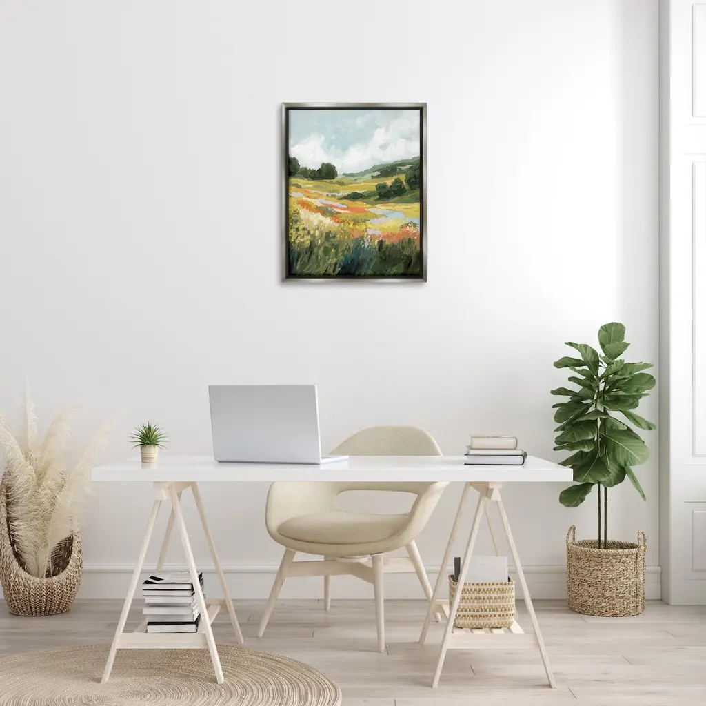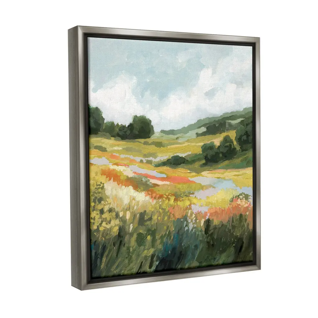 Elevate your home or office to the next level with Stupell Framed Floating Canvas Wall Art. Our premium hand-stretched canvas is mounted securely into a sturdy lightweight frame. The museum-style gap between the wrapped canvas and the box frame gives the illusion of floating artwork. Stupell Wall Art is made in the USA.Features: Dimensions: 17 x 1.7 x 21 Frame, 16 x 1.5 x 20 Canvas ArtFloating Frame Canvas Products are available in sizes 17"x21" and 25"x31". All Floating Frame Canvas Products have a 1.7" Depth.Wall Art is Ready to Hang with Hardware Free Hanging. No Installation required. For Easy Set Up Lean or Layer Artwork on Shelf or Against Wall. Artwork is Permently Fixed into the Frame.Our elevated 1.7" Thick Floating Frame is the perfect complement to our canvas style Wall Art. We use only the highest quality inks in house with industry leading printing solutions. Canvas is hand stretched over a durable wood foundation and then mounted securly into a Modern Box Frame. Made in the USA.Artwork Relates To: Painting, Flower, Plant, Field, Grassland, Nature, Countryside, Meadow, Rural, Grass, Landscape, Scenery, AbstractDesign by Victoria Barnes