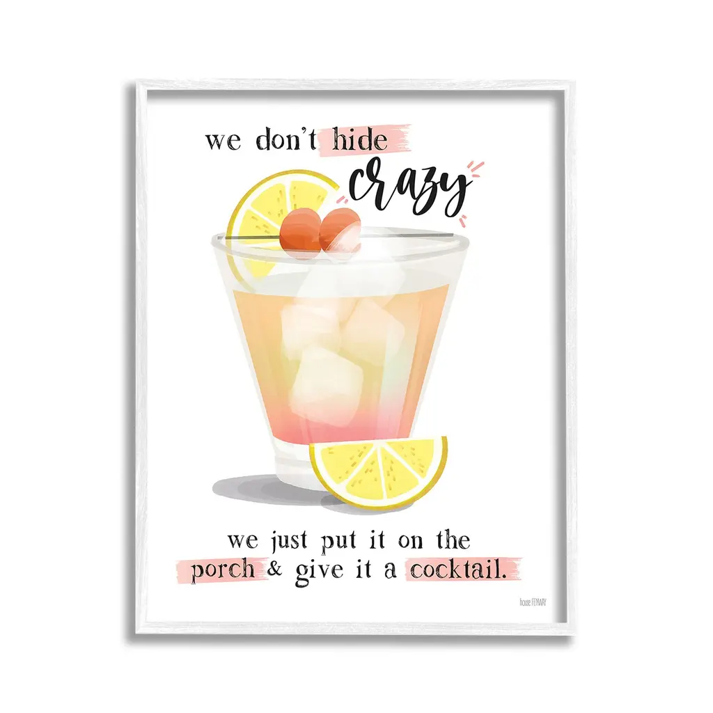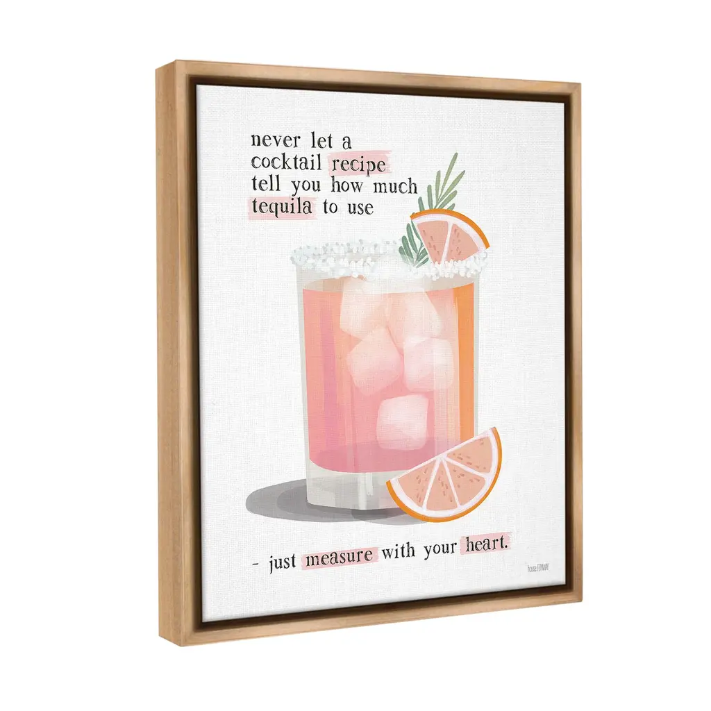 Elevate your home or office to the next level with Stupell Framed Floating Canvas Wall Art. Our premium hand-stretched canvas is mounted securely into a sturdy lightweight frame. The museum-style gap between the wrapped canvas and the box frame gives the illusion of floating artwork. Stupell Wall Art is made in the USA.Features: Dimensions: 17 x 1.7 x 21 Frame, 16 x 1.5 x 20 Canvas ArtFloating Frame Canvas Products are available in sizes 17"x21" and 25"x31". All Floating Frame Canvas Products have a 1.7" Depth.Wall Art is Ready to Hang with Hardware Free Hanging. No Installation required. For Easy Set Up Lean or Layer Artwork on Shelf or Against Wall. Artwork is Permently Fixed into the Frame.Our elevated 1.7" Thick Floating Frame is the perfect complement to our canvas style Wall Art. We use only the highest quality inks in house with industry leading printing solutions. Canvas is hand stretched over a durable wood foundation and then mounted securly into a Modern Box Frame. Made in the USA.Artwork Relates To: Beverage, Bar, Citrus, Fruit, Grapefruit, Alcohol, Cocktail, Mojito, Margarita, Never Let a Cocktail Recipe Tell You How Much Tequila to Use - Just Measure with Your HeartDesign by House Fenway