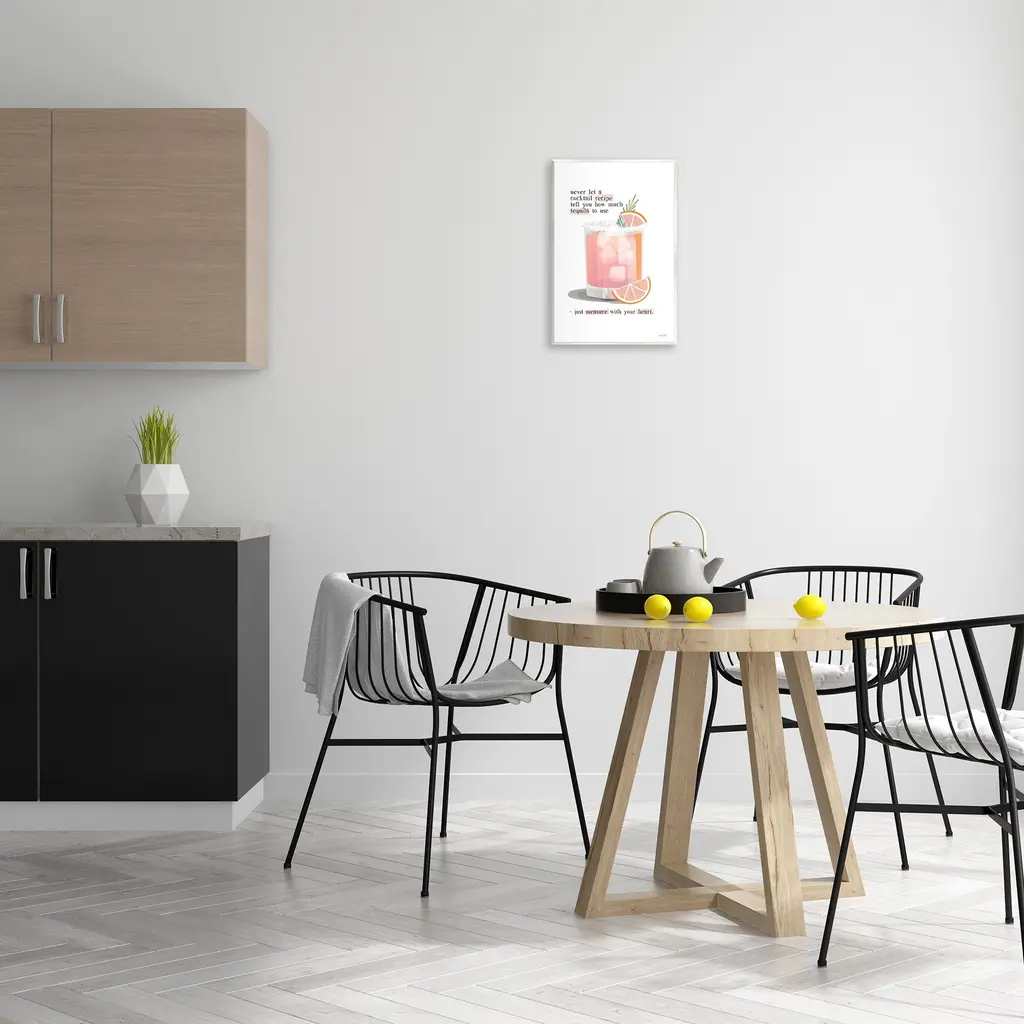Our wall plaques start as high-quality lithograph prints mounted on durable 0.5-inch thick MDF wood. Each piece is hand finished and comes with a fresh layer of white foil on the sides to give it a crisp, clean look. Plaques arrive ready to hang without installation and come with removable plastic corners to keep them from damage in transit. Stupell Wall Art is made in the USA.Features: Dimensions: 10 x 0.5 x 15 InchesWall Plaque Product Sizes Include 10"x15" and 13"x19". All wall plaque products have a 0.5" Depth. Wall Art is Ready to Hang with Hardware Free Hanging. No installation required. For Easy Set Up Lean or Layer Artwork on Shelf or Against Wall.All of our wall plaques start off as high quality lithograph prints that are then mounted on durable 0.5 inch thick MDF wood. Each piece is hand finished and comes with a fresh layer of foil on the sides to give it a crisp clean look. Made In USA.Artwork Relates To: Beverage, Bar, Citrus, Fruit, Grapefruit, Alcohol, Cocktail, Mojito, Margarita, Never Let a Cocktail Recipe Tell You How Much Tequila to Use - Just Measure with Your HeartDesign by House Fenway