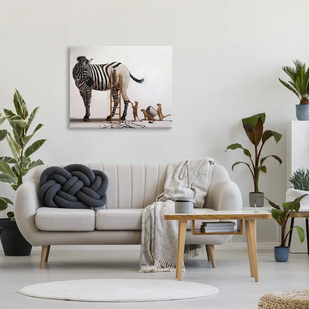 We create our stretched canvas to the highest standards. Using only the highest quality inks and canvas on Mimaki printers, we hand-cut and stretch each piece over a 1.5-inch thick wooden frame for hanging. As a result, the art comes ready to hang on the sturdy ledge with no installation required. Stupell Wall Art is made in the USA.Features: Dimensions: 20 x 1.5 x 16 InchesStretched Canvas Sizes Include Standard: 20 x 1.5 x 16 Large: 30 x 1.5 x 20 X-Large: 40 x 1.5 x 30 Oversized: 48 x 1.5 x 36Wall Art is Ready to Hang - No Installation or Hardware Needed. For Easy Set Up Lean or Layer Artwork on Shelf or Against Wall.Our stretched canvas is created with the highest standards. We use only the highest quality inks and canvas on our in house Mimaki printers, and then hand cut and stretch each piece over a 1.5 inch thick wooden frame for hanging. Made In USA.Artwork Relates To: Animal, Mammal, Wildlife, Zebra, Painting, MeerkatDesign by Lucia Heffernan