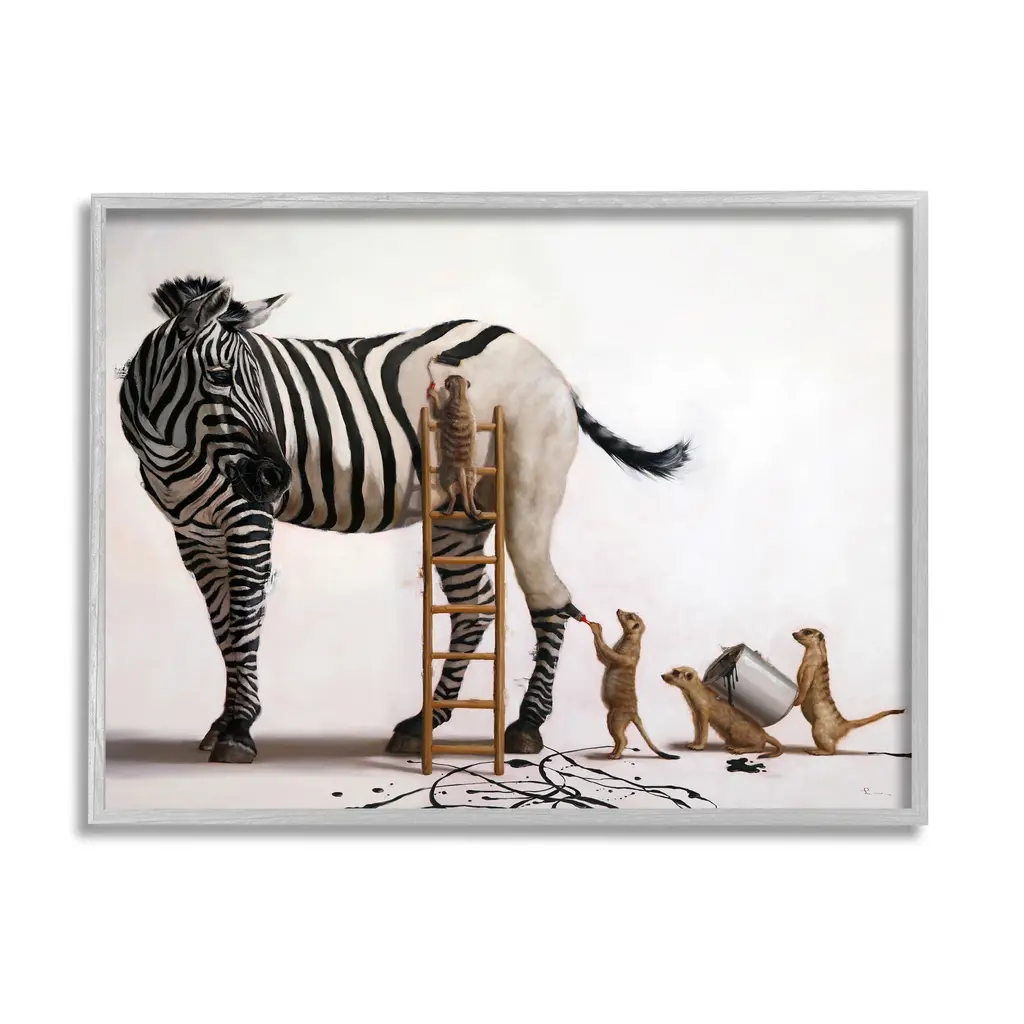 Add dimension to any room with our textured Framed Giclee Artwork. Our framed artwork is securely mounted into a 1.5-inch thick wood grain frame and ready to hang. Frames are available in three alluring styles: black, gray farmhouse and white. In addition, you should check out our oversized options if you want a statement piece. Stupell Wall Art is made in the USA.Features: Dimensions: 14 x 1.5 x 11 FramedFramed Giclee Sizes Include Standard: 14 x 1.5 x 11 Large: 20 x 1.5 x 16 Oversized: 30 x 1.5 x 24Wall Art is Ready to Hang - No Installation or Hardware Needed. For Easy Set Up Lean or Layer Artwork on Shelf or Against Wall.Our giclée prints are carefully mounted on a durable MDF backing, and then perfectly finished in a 1.5 inch thick woodgrain frame. Mounted frame colors include black, gray farmhouse and white. Made In USA.Artwork Relates To: Animal, Mammal, Wildlife, Zebra, Painting, MeerkatDesign by Lucia Heffernan