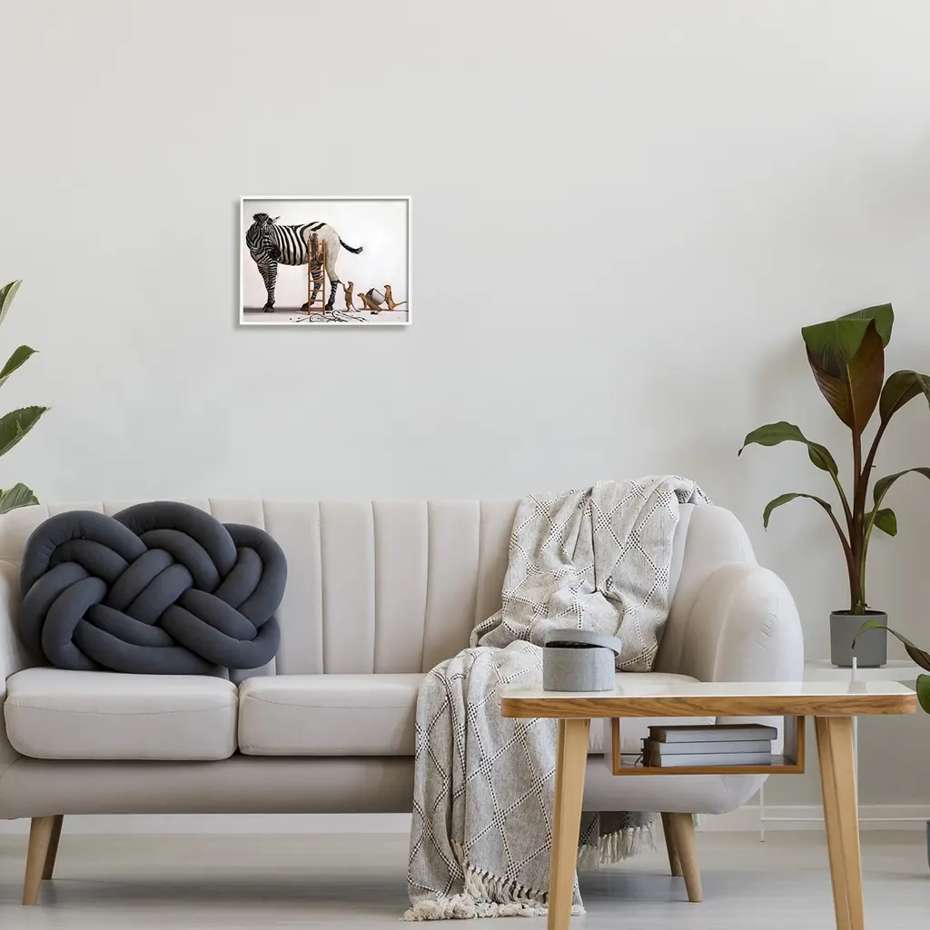 Add dimension to any room with our textured Framed Giclee Artwork. Our framed artwork is securely mounted into a 1.5-inch thick wood grain frame and ready to hang. Frames are available in three alluring styles: black, gray farmhouse and white. In addition, you should check out our oversized options if you want a statement piece. Stupell Wall Art is made in the USA.Features: Dimensions: 14 x 1.5 x 11 FramedFramed Giclee Sizes Include Standard: 14 x 1.5 x 11 Large: 20 x 1.5 x 16 Oversized: 30 x 1.5 x 24Wall Art is Ready to Hang - No Installation or Hardware Needed. For Easy Set Up Lean or Layer Artwork on Shelf or Against Wall.Our giclée prints are carefully mounted on a durable MDF backing, and then perfectly finished in a 1.5 inch thick woodgrain frame. Mounted frame colors include black, gray farmhouse and white. Made In USA.Artwork Relates To: Animal, Mammal, Wildlife, Zebra, Painting, MeerkatDesign by Lucia Heffernan