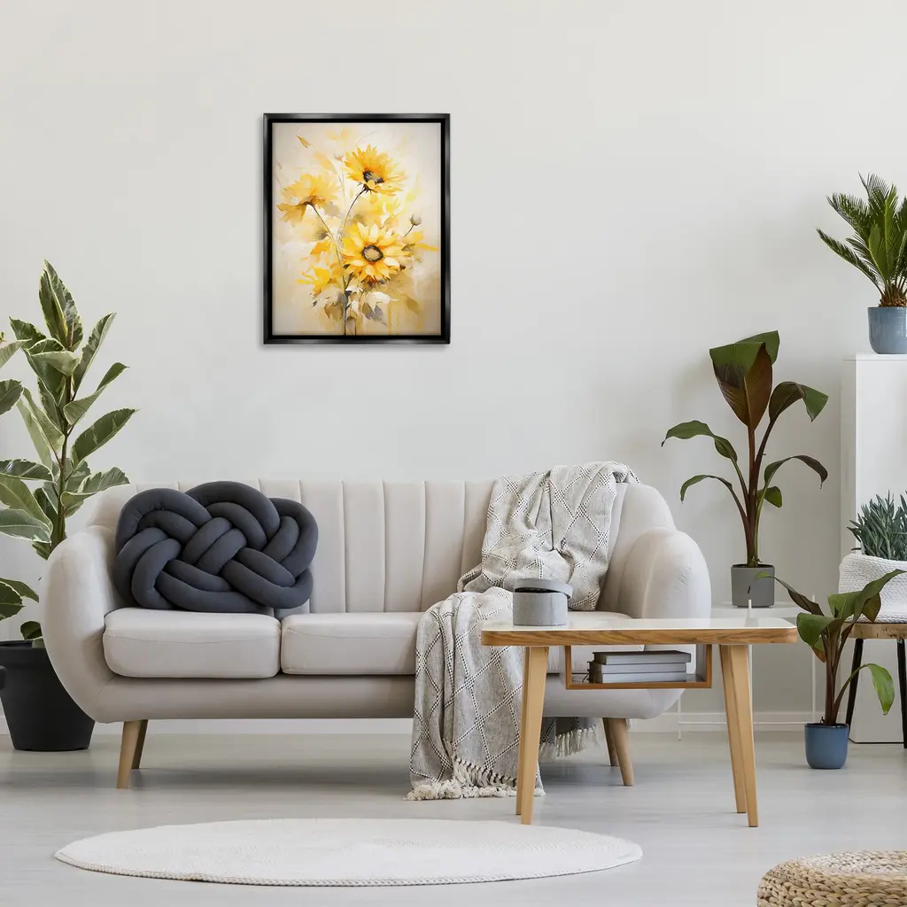 Elevate your home or office to the next level with Stupell Framed Floating Canvas Wall Art. Our premium hand-stretched canvas is mounted securely into a sturdy lightweight frame. The museum-style gap between the wrapped canvas and the box frame gives the illusion of floating artwork. Stupell Wall Art is made in the USA.Features: Dimensions: 17 x 1.7 x 21 Frame, 16 x 1.5 x 20 Canvas ArtFloating Frame Canvas Products are available in sizes 17"x21" and 25"x31". All Floating Frame Canvas Products have a 1.7" Depth.Wall Art is Ready to Hang with Hardware Free Hanging. No Installation required. For Easy Set Up Lean or Layer Artwork on Shelf or Against Wall. Artwork is Permently Fixed into the Frame.Our elevated 1.7" Thick Floating Frame is the perfect complement to our canvas style Wall Art. We use only the highest quality inks in house with industry leading printing solutions. Canvas is hand stretched over a durable wood foundation and then mounted securly into a Modern Box Frame. Made in the USA.Artwork Relates To: Flower, Plant, Daisy, Sunflower, Modern, Floral, Bouquet, Abstract, ModernDesign by Ramona Murdock