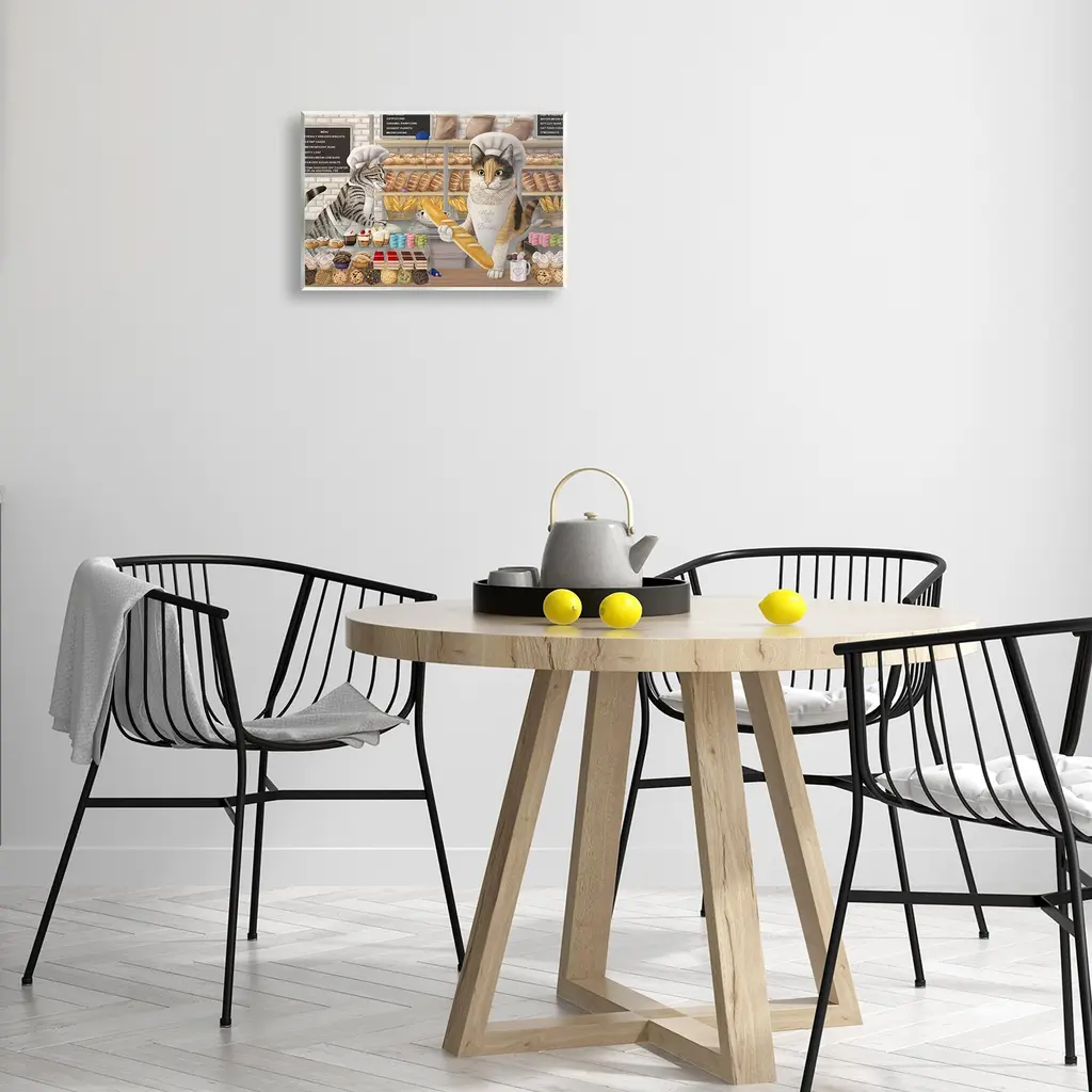 Our wall plaques start as high-quality lithograph prints mounted on durable 0.5-inch thick MDF wood. Each piece is hand finished and comes with a fresh layer of white foil on the sides to give it a crisp, clean look. Plaques arrive ready to hang without installation and come with removable plastic corners to keep them from damage in transit. Stupell Wall Art is made in the USA.Features: Dimensions: 15 x 0.5 x 10 InchesWall Plaque Product Sizes Include 15"x10" and 19"x13". All wall plaque products have a 0.5" Depth. Wall Art is Ready to Hang with Hardware Free Hanging. No installation required. For Easy Set Up Lean or Layer Artwork on Shelf or Against Wall.All of our wall plaques start off as high quality lithograph prints that are then mounted on durable 0.5 inch thick MDF wood. Each piece is hand finished and comes with a fresh layer of foil on the sides to give it a crisp clean look. Made In USA.Artwork Relates To: Animal, Pet, Cat, Bakery, Café, Humor, FunnyDesign by Mehu Art