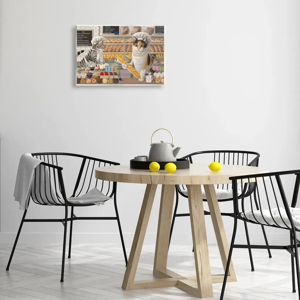 Our wall plaques start as high-quality lithograph prints mounted on durable 0.5-inch thick MDF wood. Each piece is hand finished and comes with a fresh layer of white foil on the sides to give it a crisp, clean look. Plaques arrive ready to hang without installation and come with removable plastic corners to keep them from damage in transit. Stupell Wall Art is made in the USA.Features: Dimensions: 15 x 0.5 x 10 InchesWall Plaque Product Sizes Include 15"x10" and 19"x13". All wall plaque products have a 0.5" Depth. Wall Art is Ready to Hang with Hardware Free Hanging. No installation required. For Easy Set Up Lean or Layer Artwork on Shelf or Against Wall.All of our wall plaques start off as high quality lithograph prints that are then mounted on durable 0.5 inch thick MDF wood. Each piece is hand finished and comes with a fresh layer of foil on the sides to give it a crisp clean look. Made In USA.Artwork Relates To: Animal, Pet, Cat, Bakery, Café, Humor, FunnyDesign by Mehu Art