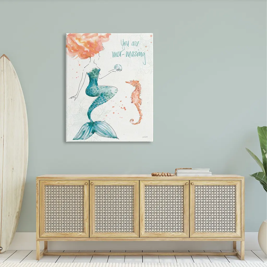 Stupell Mer-Mazing Uplifting Mermaid Phrase Stretched Canvas Wall Art, Design By Anne Tavoletti - 36 X 48