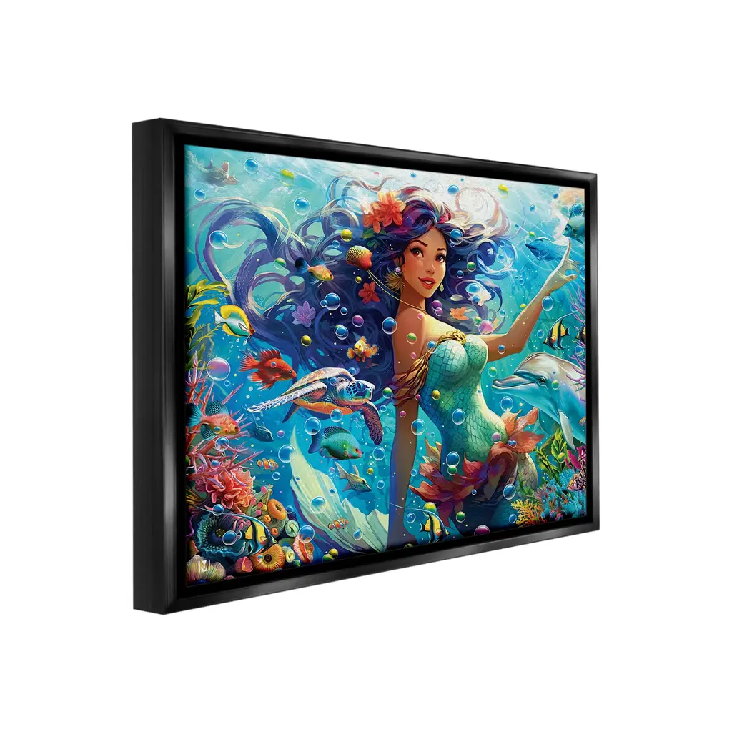 Elevate your home or office to the next level with Stupell Framed Floating Canvas Wall Art. Our premium hand-stretched canvas is mounted securely into a sturdy lightweight frame. The museum-style gap between the wrapped canvas and the box frame gives the illusion of floating artwork. Stupell Wall Art is made in the USA.Features: Dimensions: 21 x 1.7 x 17 Frame, 20 x 1.5 x 16 Canvas ArtFloating Frame Canvas Products are available in sizes 21"x17" and 31"x25". All Floating Frame Canvas Products have a 1.7" Depth.Wall Art is Ready to Hang with Hardware Free Hanging. No Installation required. For Easy Set Up Lean or Layer Artwork on Shelf or Against Wall. Artwork is Permently Fixed into the Frame.Our elevated 1.7" Thick Floating Frame is the perfect complement to our canvas style Wall Art. We use only the highest quality inks in house with industry leading printing solutions. Canvas is hand stretched over a durable wood foundation and then mounted securly into a Modern Box Frame. Made in the USA.Artwork Relates To: Sea, Water, Animal, Reef, Sea Life, Fish, Female, Person, Woman, Turtle, Aquatic, Mermaid, Fantasy, DolphinDesign by Michael David Ward