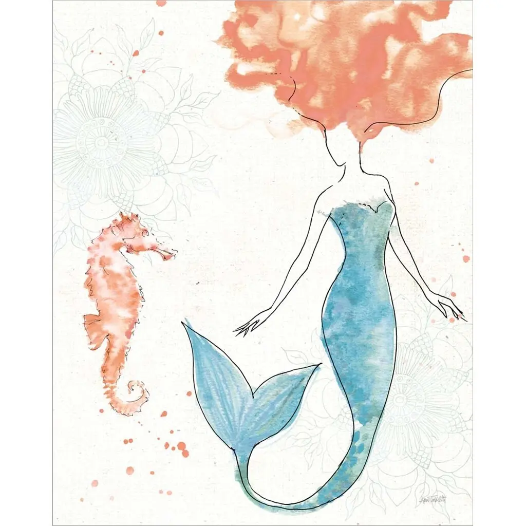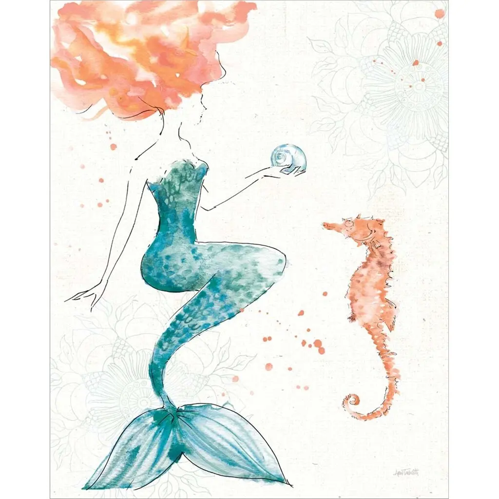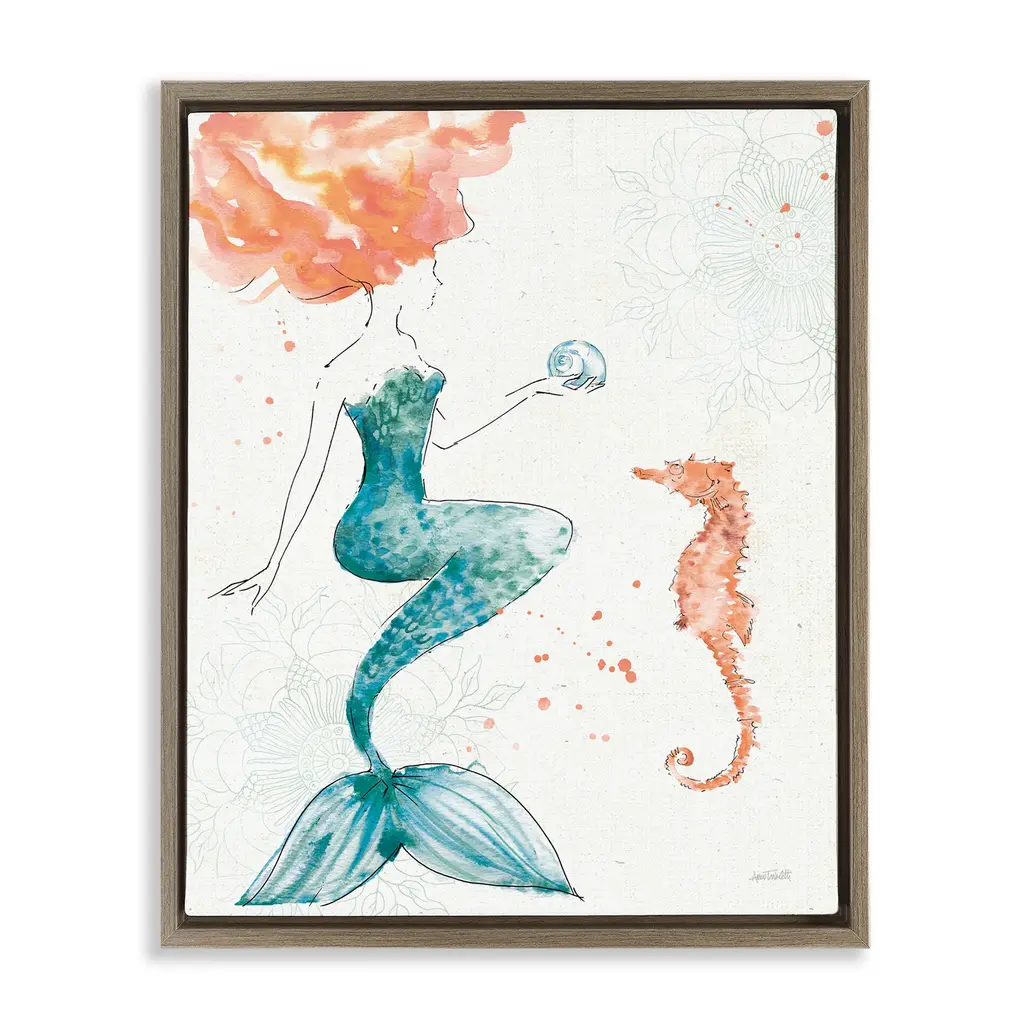 Stupell Mermaid And Ocean Seahorse Floating Framed Canvas Wall Art, Design By Anne Tavoletti - 17 X 21 - Grey