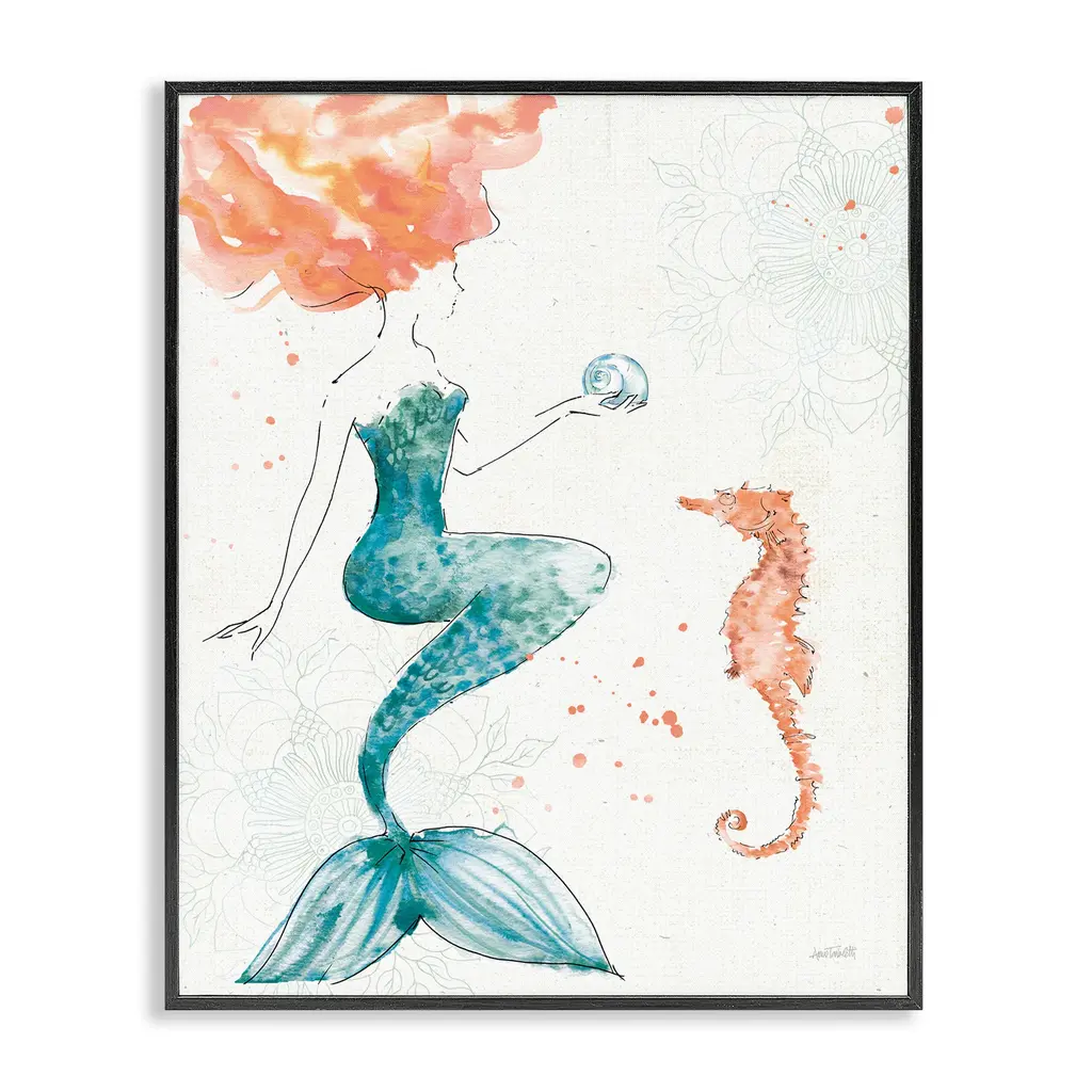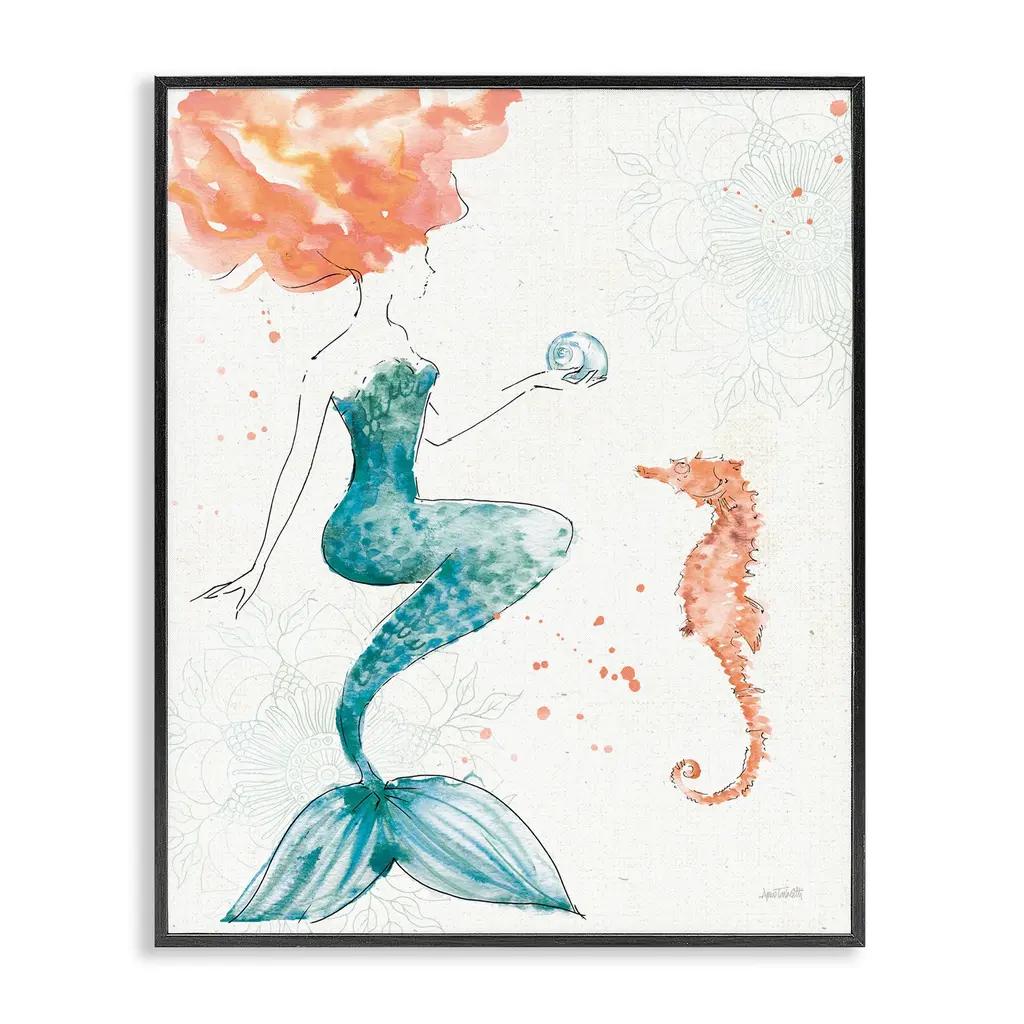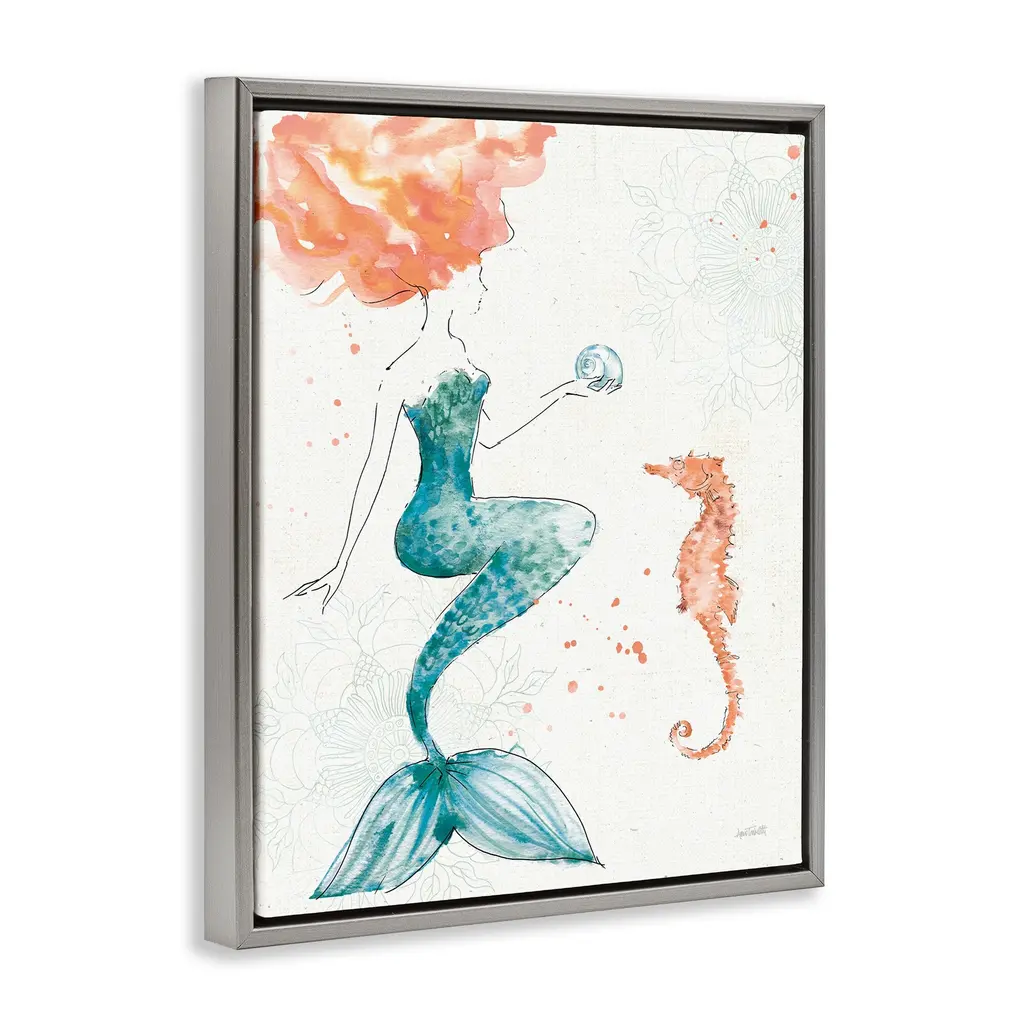 Elevate your home or office to the next level with Stupell Framed Floating Canvas Wall Art. Our premium hand stretched canvas is mounted securly into a sturdy lightweight frame. The museum style gap between wrapped canvas and box frame gives the illusion of floating artwork.Features:Floating Frame Sizes IncludeStandard: 21 x 1.7 x 17Oversized: 31 x 1.7 x 25Wall Art is Ready to Hang - No Installation or Hardware Needed. For Easy Set Up Lean or Layer Artwork on Shelf or Against Wall.Artwork Relates To: Animal, Sea Life, Seahorse, Painting, Mermaid, Pattern, Floral, SeashellOur elevated 1.7" Thick Floating Frame is the perfect complement to our canvas style Wall Art. We use only the highest quality inks in house with industry leading printing solutions. Canvas is hand stretched over a durable wood foundation and then mounted securly into a Modern Box Frame. Made in the USA.Design by Anne Tavoletti