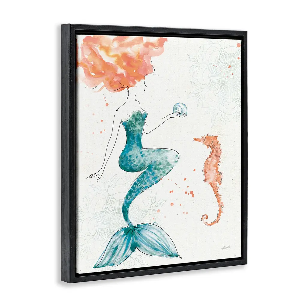 Stupell Mermaid And Ocean Seahorse Floating Framed Canvas Wall Art, Design By Anne Tavoletti - 25 X 31 - Black