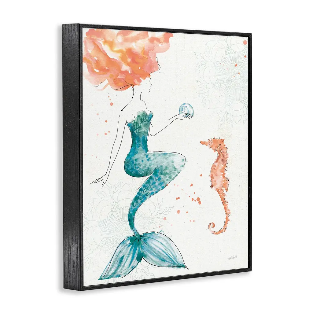 Our Framed Giclee Wall Art adds a touch of class to any space in your home or office. Frames are available in three alluring styles: black, gray farmhouse and white. Our textured artwork will add more depth and dimension to any space. Each piece is mounted with a 1.5 inch thick wood grain frame that is ready to hang! Looking for a statement piece? We have oversized artwork available.Features:Framed Giclee Sizes IncludeStandard: 11 x 1.5 x 14Large: 16 x 1.5 x 20Oversized: 24 x 1.5 x 30Wall Art is Ready to Hang - No Installation or Hardware Needed. For Easy Set Up Lean or Layer Artwork on Shelf or Against Wall.Artwork Relates To: Animal, Sea Life, Seahorse, Painting, Mermaid, Pattern, Floral, SeashellOur giclee prints are carefully mounted on a durable MDF backing, and then perfectly finished in a 1.5 inch thick woodgrain frame. Mounted frame colors include black, gray farmhouse and white. Made In USA.Design by Anne Tavoletti