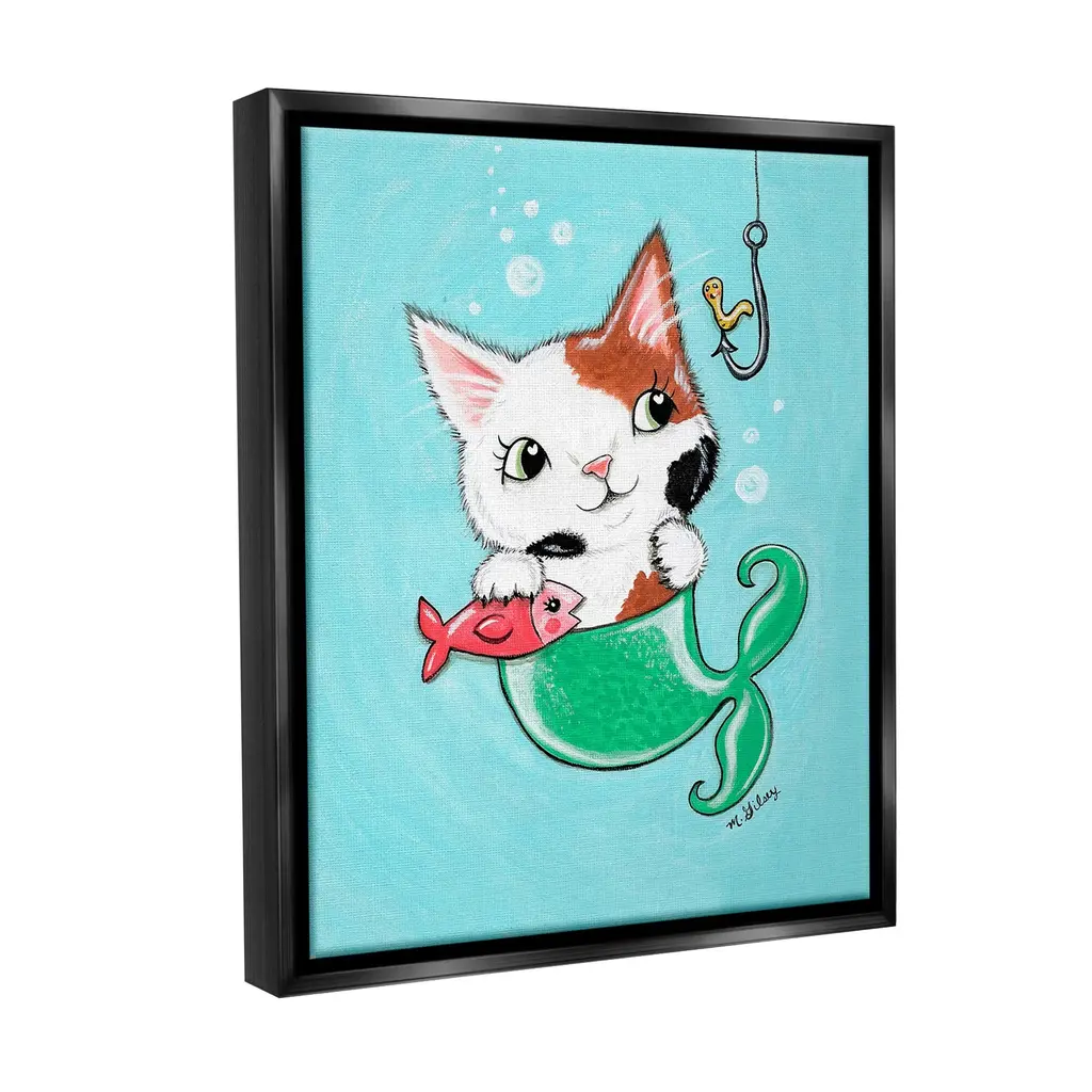Elevate your home or office to the next level with Stupell Framed Floating Canvas Wall Art. Our premium hand-stretched canvas is mounted securely into a sturdy lightweight frame. The museum-style gap between the wrapped canvas and the box frame gives the illusion of floating artwork. Stupell Wall Art is made in the USA.Features: Dimensions: 17 x 1.7 x 21 Frame, 16 x 1.5 x 20 Canvas ArtFloating Frame Canvas Products are available in sizes 17"x21" and 25"x31". All Floating Frame Canvas Products have a 1.7" Depth.Wall Art is Ready to Hang with Hardware Free Hanging. No Installation required. For Easy Set Up Lean or Layer Artwork on Shelf or Against Wall. Artwork is Permently Fixed into the Frame.Our elevated 1.7" Thick Floating Frame is the perfect complement to our canvas style Wall Art. We use only the highest quality inks in house with industry leading printing solutions. Canvas is hand stretched over a durable wood foundation and then mounted securly into a Modern Box Frame. Made in the USA.Artwork Relates To: Animal, Cat, Mammal, Pet, Kitten, Fishing, Fish, Mermaid, Nautical, Beach, SwimmingDesign by Michelle Gilsey