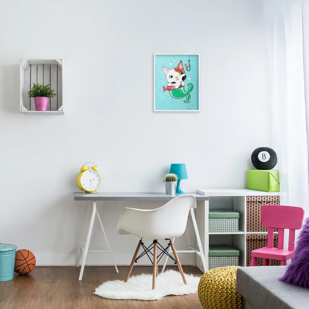 Add dimension to any room with our textured Framed Giclee Artwork. Our framed artwork is securely mounted into a 1.5-inch thick wood grain frame and ready to hang. Frames are available in three alluring styles: black, gray farmhouse and white. In addition, you should check out our oversized options if you want a statement piece. Stupell Wall Art is made in the USA.Features: Dimensions: 11 x 1.5 x 14 FramedFramed Giclee Products are available in the sizes 11"x14", 16"x20" or 24"x30". All Framed Giclee Products have a 1.5" Depth. Wall Art is Ready to Hang with Hardware Free Hanging. No installation required. For Easy Set Up Lean or Layer Artwork on Shelf or Against Wall.Our giclée prints are carefully mounted on a durable MDF backing, and then perfectly finished in a 1.5 inch thick woodgrain frame. Mounted frame colors include black, gray farmhouse and white. Made In USA.Artwork Relates To: Animal, Cat, Mammal, Pet, Kitten, Fishing, Fish, Mermaid, Nautical, Beach, SwimmingDesign by Michelle Gilsey
