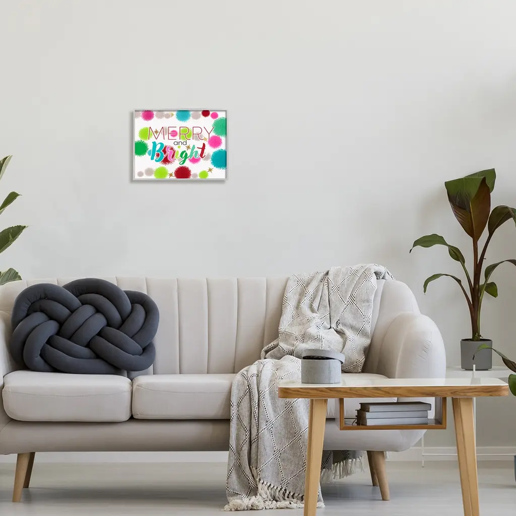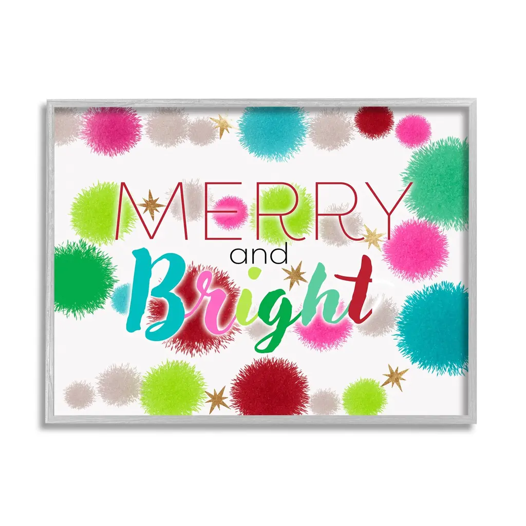 Add dimension to any room with our textured Framed Giclee Artwork. Our framed artwork is securely mounted into a 1.5-inch thick wood grain frame and ready to hang. Frames are available in three alluring styles: black, gray farmhouse and white. In addition, you should check out our oversized options if you want a statement piece. Stupell Wall Art is made in the USA.Features: Dimensions: 14 x 1.5 x 11 FramedFramed Giclee Sizes Include Standard: 14 x 1.5 x 11 Large: 20 x 1.5 x 16 Oversized: 30 x 1.5 x 24Wall Art is Ready to Hang - No Installation or Hardware Needed. For Easy Set Up Lean or Layer Artwork on Shelf or Against Wall.Our giclée prints are carefully mounted on a durable MDF backing, and then perfectly finished in a 1.5 inch thick woodgrain frame. Mounted frame colors include black, gray farmhouse and white. Made In USA.Artwork Relates To: Pom Pom, Holiday, Christmas, Stars, Merry And BrightDesign by Ziwei Li