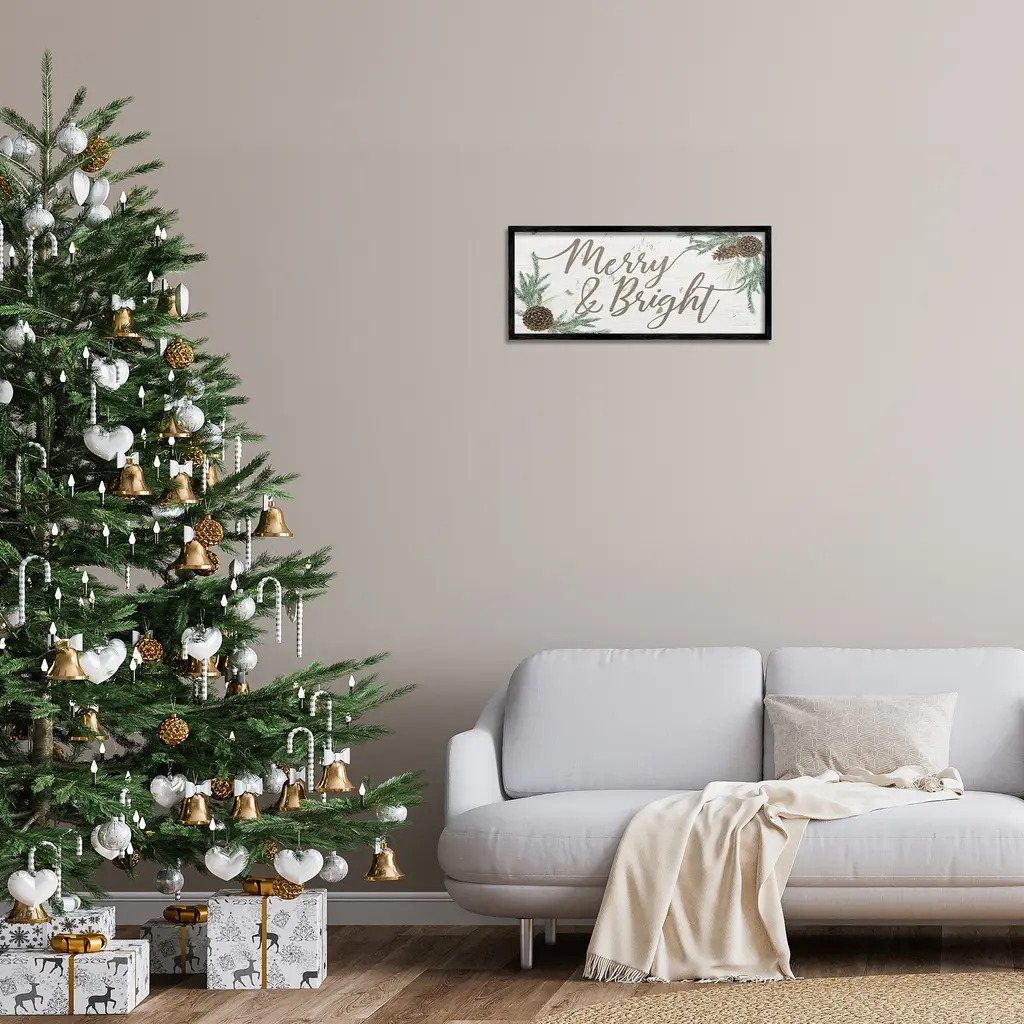 Add dimension to any room with our textured Framed Giclee Artwork. Our framed artwork is securely mounted into a 1.5-inch thick wood grain frame and ready to hang. Frames are available in three alluring styles: black, gray farmhouse and white. In addition, you should check out our oversized options if you want a statement piece. Stupell Wall Art is made in the USA.Features: Dimensions: 24 x 1.5 x 10 FramedFramed Giclee Product Sizes include 24"x10" and 30"x13". All Framed Giclee products have a 1.5" Depth.Wall Art is Ready to Hang with Hardware Free Hanging. No installation required. For Easy Set Up Lean or Layer Artwork on Shelf or Against Wall.Our giclée prints are carefully mounted on a durable MDF backing, and then perfectly finished in a 1.5 inch thick woodgrain frame. Mounted frame colors include black, gray farmhouse and white. Made In USA.Artwork Relates To: Holiday, Winter, Christmas, Seasonal, Merry, Pinecone, BotanicalDesign by Grace Popp