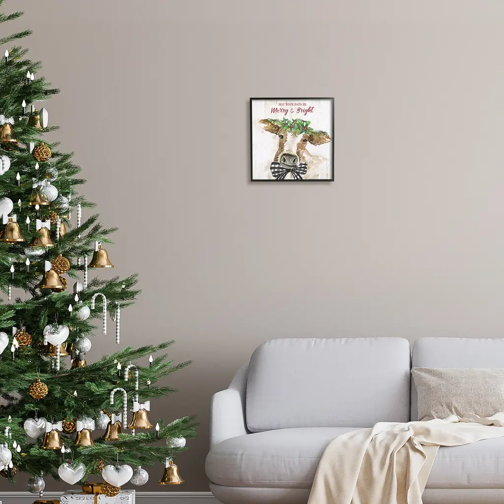 Add dimension to any room with our textured Framed Giclee Artwork. Our framed artwork is securely mounted into a 1.5-inch thick wood grain frame and ready to hang. Frames are available in three alluring styles: black, gray farmhouse and white. In addition, you should check out our oversized options if you want a statement piece. Stupell Wall Art is made in the USA.Features: Dimensions: 12 x 1.5 x 12 FramedFramed Giclee Sizes Include Standard: 12 x 1.5 x 12 Large: 17 x 1.5 x 17 Oversized: 24 x 1.5 x 24Wall Art is Ready to Hang - No Installation or Hardware Needed. For Easy Set Up Lean or Layer Artwork on Shelf or Against Wall.Our giclée prints are carefully mounted on a durable MDF backing, and then perfectly finished in a 1.5 inch thick woodgrain frame. Mounted frame colors include black, gray farmhouse and white. Made In USA.Artwork Relates To: Holiday, Seasonal, Christmas, Winter, Cattle, Farmhouse, May Your Days Be Merry & Bright, Holly BerryDesign by Nan