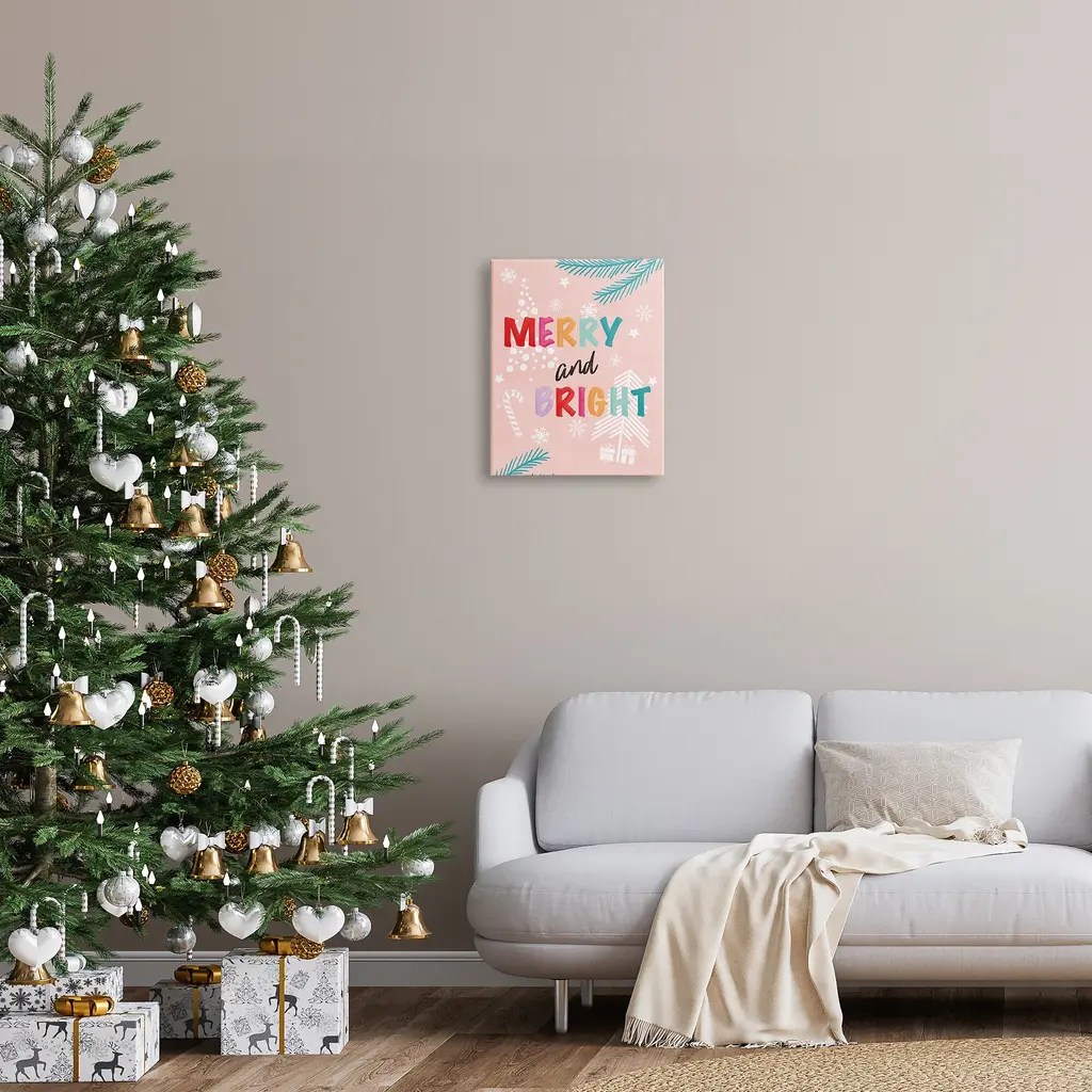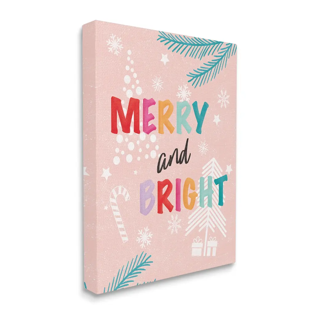 Stupell Merry & Bright Pastel Phrase Canvas Wall Art By Jj Design House Llc - 16 X 20