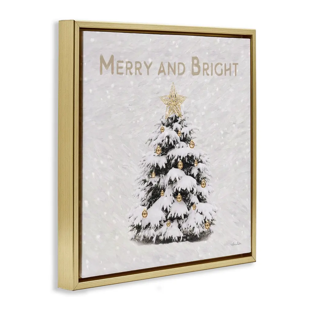 Stupell Merry & Bright Scene Framed Floater Canvas Wall Art Design By Lori Deiter - 25 X 25 - Gold