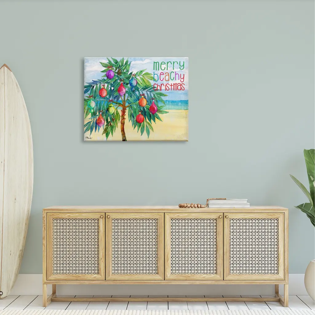 Stupell Merry Beachy Christmas Holiday Palm Stretched Canvas Wall Art, Design By Paul Brent - 40 X 30