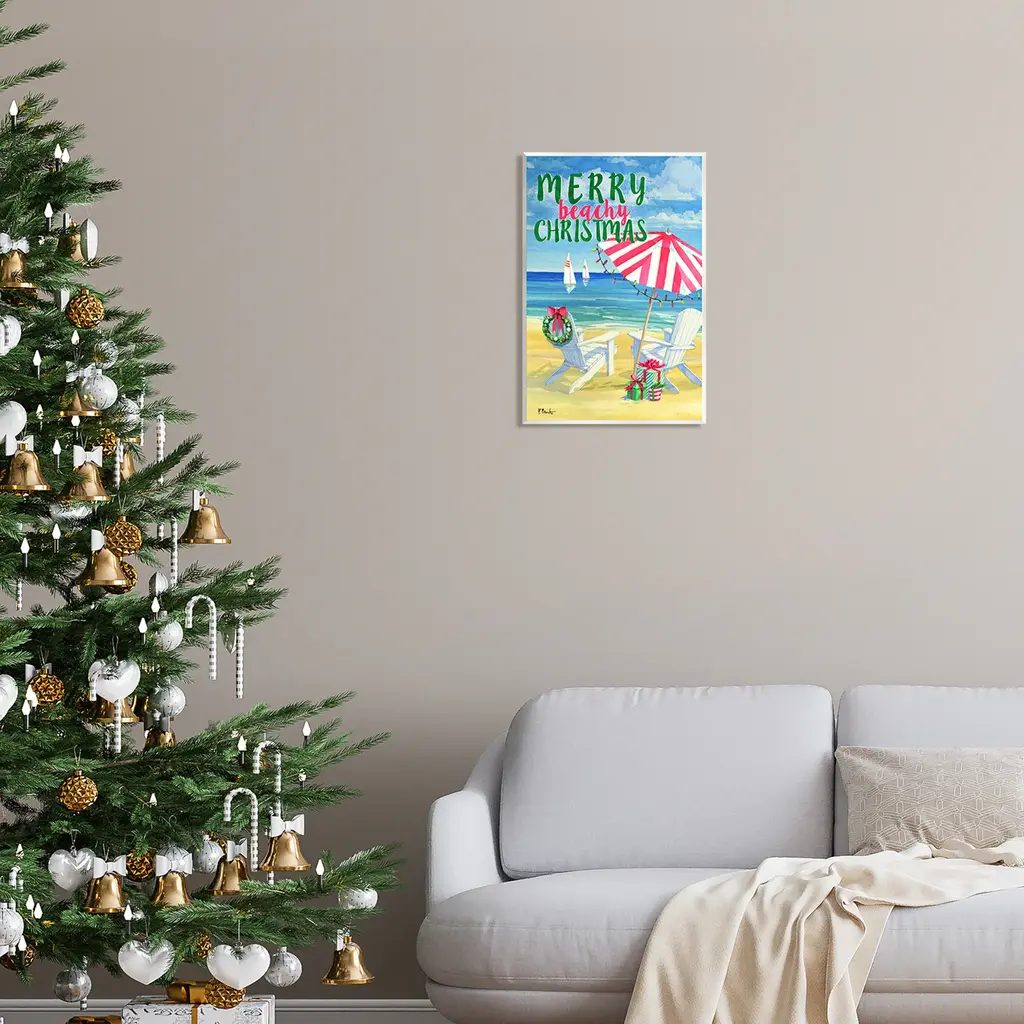 Stupell Merry Beachy Christmas Wall Plaque Art Design By Paul Brent - 13 X 19