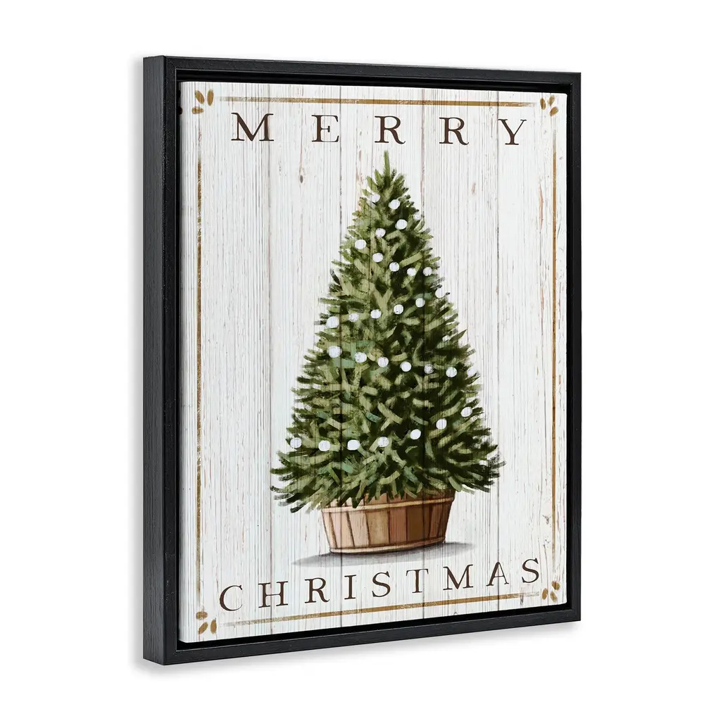 Elevate your home or office to the next level with Stupell Framed Floating Canvas Wall Art. Our premium hand-stretched canvas is mounted securely into a sturdy lightweight frame. The museum-style gap between the wrapped canvas and the box frame gives the illusion of floating artwork. Stupell Wall Art is made in the USA.Features: Dimensions: 17 x 1.7 x 21 Frame, 16 x 1.5 x 20 Canvas ArtFloating Frame Canvas Products are available in sizes 17"x21" and 25"x31". All Floating Frame Canvas Products have a 1.7" Depth.Wall Art is Ready to Hang with Hardware Free Hanging. No Installation required. For Easy Set Up Lean or Layer Artwork on Shelf or Against Wall. Artwork is Permently Fixed into the Frame.Our elevated 1.7" Thick Floating Frame is the perfect complement to our canvas style Wall Art. We use only the highest quality inks in house with industry leading printing solutions. Canvas is hand stretched over a durable wood foundation and then mounted securly into a Modern Box Frame. Made in the USA.Artwork Relates To: Holiday, Christmas, Tree, Rustic, Country, FarmhouseDesign by Elizabeth Tyndall