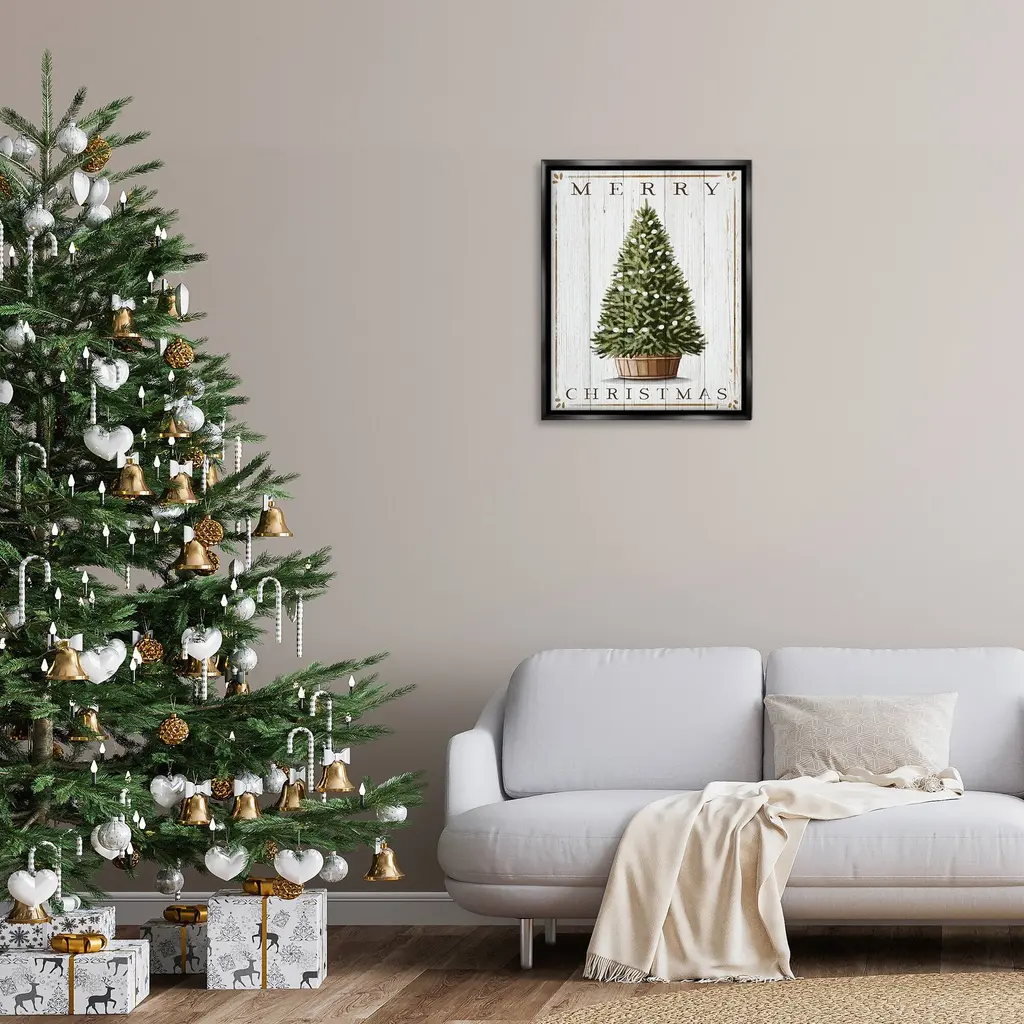 Elevate your home or office to the next level with Stupell Framed Floating Canvas Wall Art. Our premium hand-stretched canvas is mounted securely into a sturdy lightweight frame. The museum-style gap between the wrapped canvas and the box frame gives the illusion of floating artwork. Stupell Wall Art is made in the USA.Features: Dimensions: 17 x 1.7 x 21 Frame, 16 x 1.5 x 20 Canvas ArtFloating Frame Canvas Products are available in sizes 17"x21" and 25"x31". All Floating Frame Canvas Products have a 1.7" Depth.Wall Art is Ready to Hang with Hardware Free Hanging. No Installation required. For Easy Set Up Lean or Layer Artwork on Shelf or Against Wall. Artwork is Permently Fixed into the Frame.Our elevated 1.7" Thick Floating Frame is the perfect complement to our canvas style Wall Art. We use only the highest quality inks in house with industry leading printing solutions. Canvas is hand stretched over a durable wood foundation and then mounted securly into a Modern Box Frame. Made in the USA.Artwork Relates To: Holiday, Christmas, Tree, Rustic, Country, FarmhouseDesign by Elizabeth Tyndall