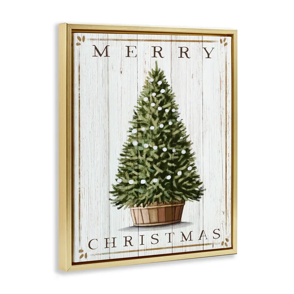Elevate your home or office to the next level with Stupell Framed Floating Canvas Wall Art. Our premium hand-stretched canvas is mounted securely into a sturdy lightweight frame. The museum-style gap between the wrapped canvas and the box frame gives the illusion of floating artwork. Stupell Wall Art is made in the USA.Features: Dimensions: 17 x 1.7 x 21 Frame, 16 x 1.5 x 20 Canvas ArtFloating Frame Canvas Products are available in sizes 17"x21" and 25"x31". All Floating Frame Canvas Products have a 1.7" Depth.Wall Art is Ready to Hang with Hardware Free Hanging. No Installation required. For Easy Set Up Lean or Layer Artwork on Shelf or Against Wall. Artwork is Permently Fixed into the Frame.Our elevated 1.7" Thick Floating Frame is the perfect complement to our canvas style Wall Art. We use only the highest quality inks in house with industry leading printing solutions. Canvas is hand stretched over a durable wood foundation and then mounted securly into a Modern Box Frame. Made in the USA.Artwork Relates To: Holiday, Christmas, Tree, Rustic, Country, FarmhouseDesign by Elizabeth Tyndall