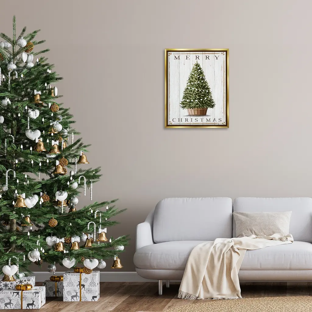 Stupell Merry Christmas Country Tree Framed Floater Canvas Wall Art Design By Elizabeth Tyndall - 25 X 31 - Gold