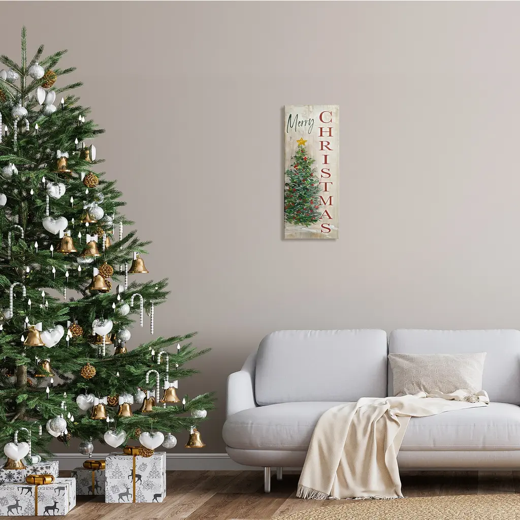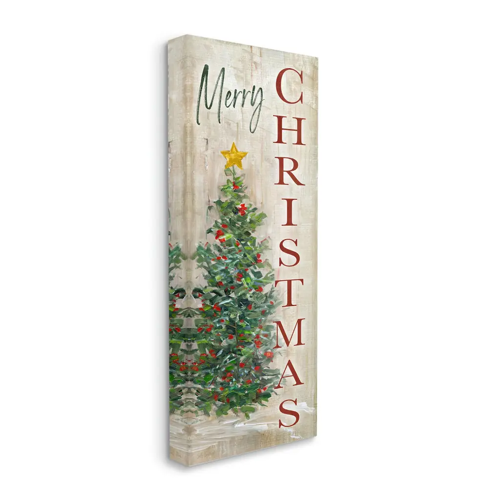 Stupell Merry Christmas Greeting Festive Rustic Holiday Tree Canvas Wall Art - Green - 10 X 24