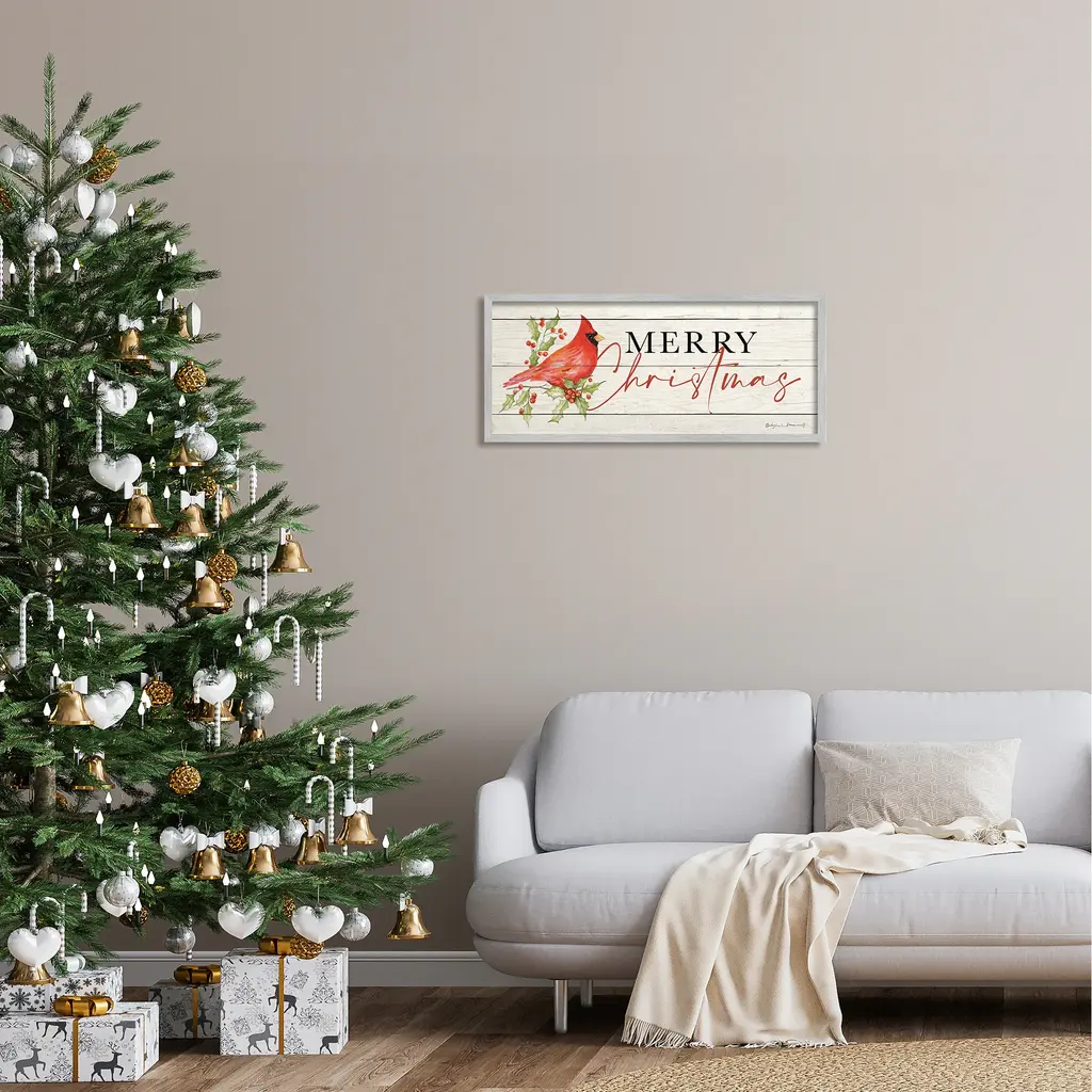 Add dimension to any room with our textured Framed Giclee Artwork. Our framed artwork is securely mounted into a 1.5-inch thick wood grain frame and ready to hang. Frames are available in three alluring styles: black, gray farmhouse and white. In addition, you should check out our oversized options if you want a statement piece. Stupell Wall Art is made in the USA.Features: Dimensions: 24 x 1.5 x 10 FramedFramed Giclee Sizes Include Standard: 24 x 1.5 x 10 Oversized: 30 x 1.5 x 13Wall Art is Ready to Hang - No Installation or Hardware Needed. For Easy Set Up Lean or Layer Artwork on Shelf or Against Wall.Our giclée prints are carefully mounted on a durable MDF backing, and then perfectly finished in a 1.5 inch thick woodgrain frame. Mounted frame colors include black, gray farmhouse and white. Made In USA.Artwork Relates To: Animal, Bird, Cardinal, Beak, Holiday, Christmas, Holly Berries, Merry ChristmasDesign by Stephanie Workman Marrott