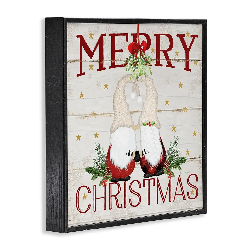 Stupell Merry Christmas Holiday Phrase Gnomes Under Mistletoe Framed Wall Art,12x12 - 12 X 12 - Black