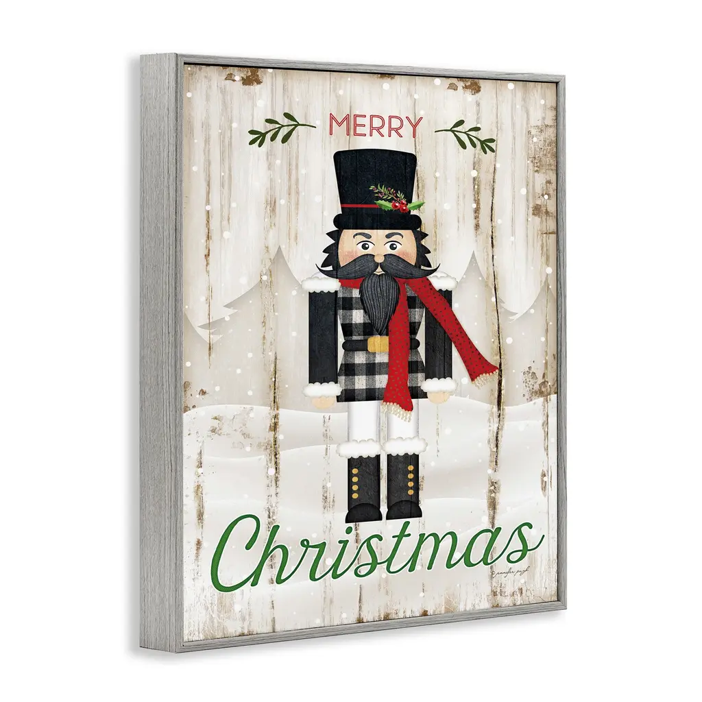 Stupell Merry Christmas Holiday Phrase Winter Nutcracker Framed Wall Art - 11 X 14 - Grey