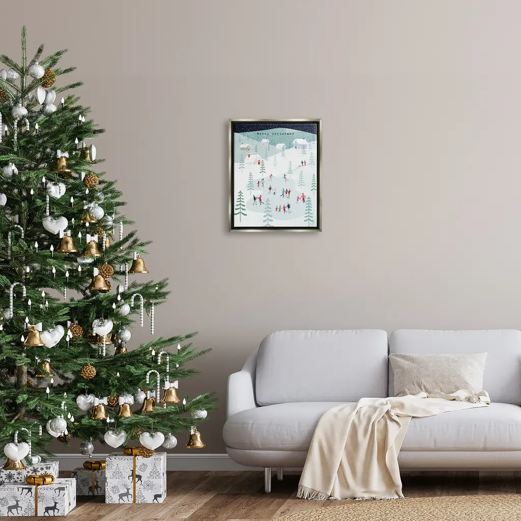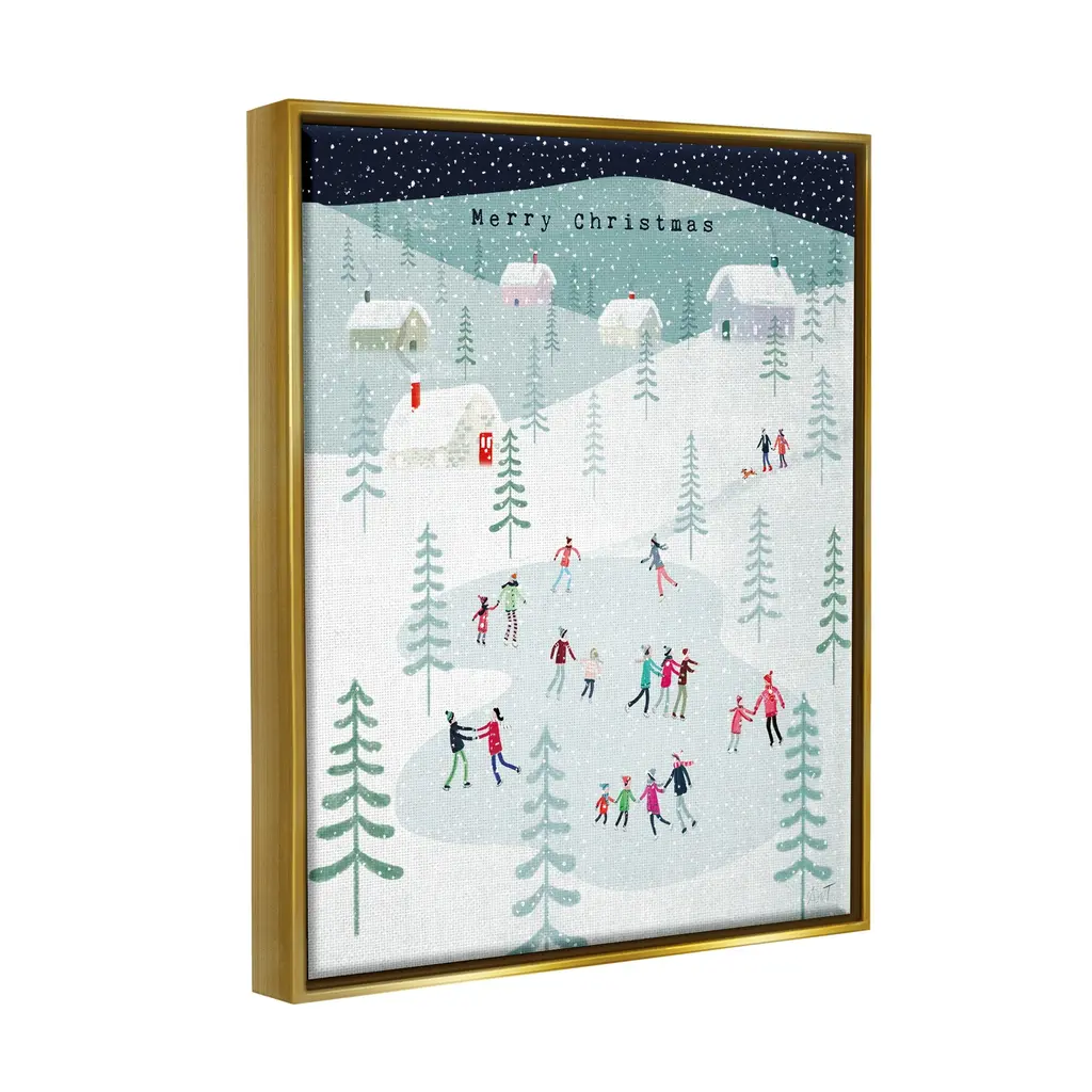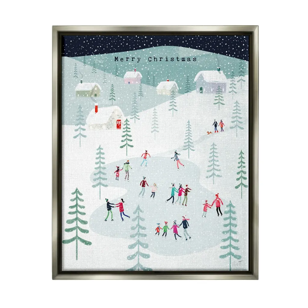 Elevate your home or office to the next level with Stupell Framed Floating Canvas Wall Art. Our premium hand-stretched canvas is mounted securely into a sturdy lightweight frame. The museum-style gap between the wrapped canvas and the box frame gives the illusion of floating artwork. Stupell Wall Art is made in the USA.Features: Dimensions: 17 x 1.7 x 21 Frame, 16 x 1.5 x 20 Canvas ArtFloating Frame Sizes Include Standard: 17 x 1.7 x 21 Oversized: 25 x 1.7 x 31Wall Art is Ready to Hang - No Installation or Hardware Needed. For Easy Set Up Lean or Layer Artwork on Shelf or Against Wall.Our elevated 1.7" Thick Floating Frame is the perfect complement to our canvas style Wall Art. We use only the highest quality inks in house with industry leading printing solutions. Canvas is hand stretched over a durable wood foundation and then mounted securly into a Modern Box Frame. Made in the USA.Artwork Relates To: Nature, Person, Snow, Winter, Ice Skating, Families, Scene, Merry ChristmasDesign by Andrew Thornton
