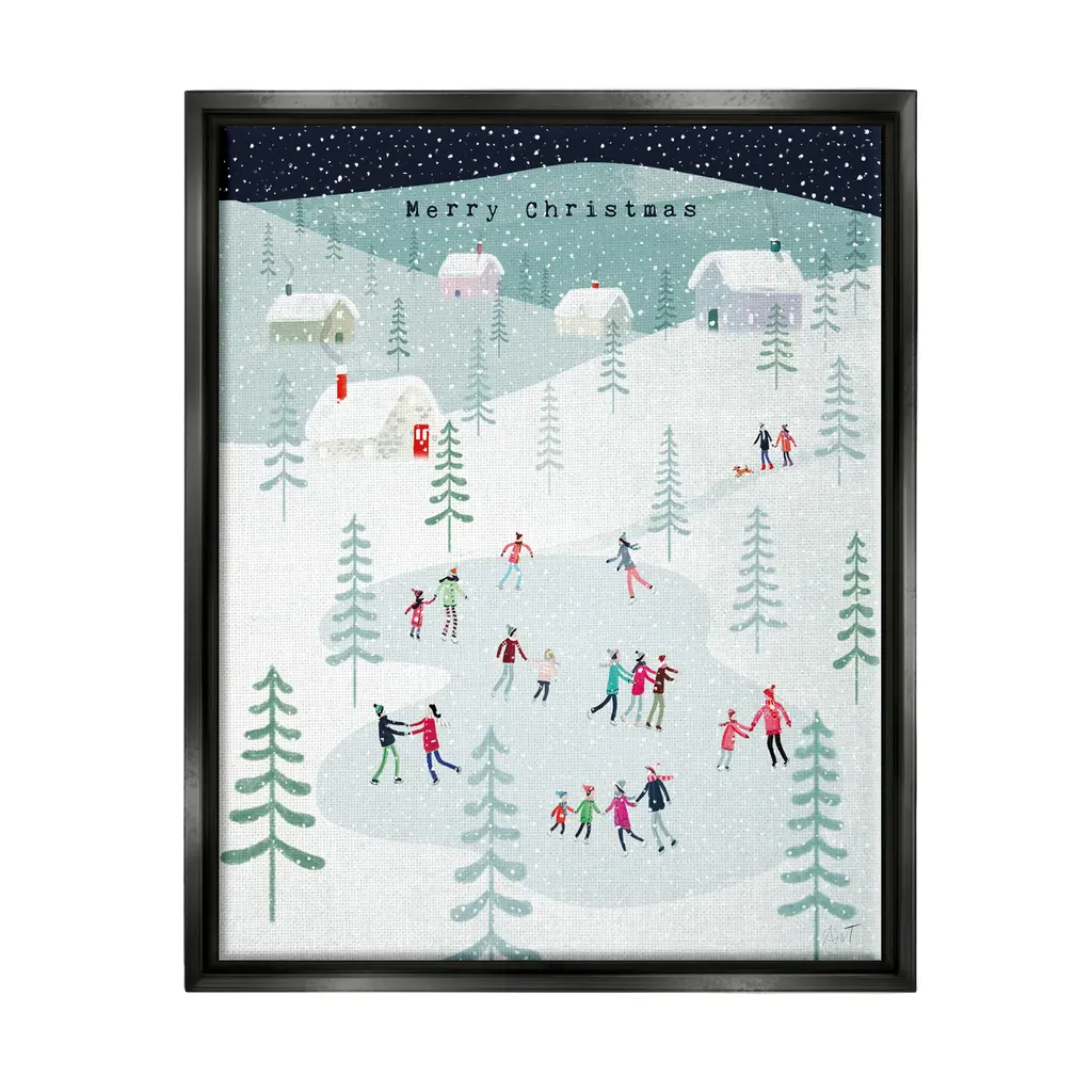 Stupell Merry Christmas Winter Ice Skating Framed Floater Canvas Wall Art By Andrew Thornton - 16 X 20 - Black