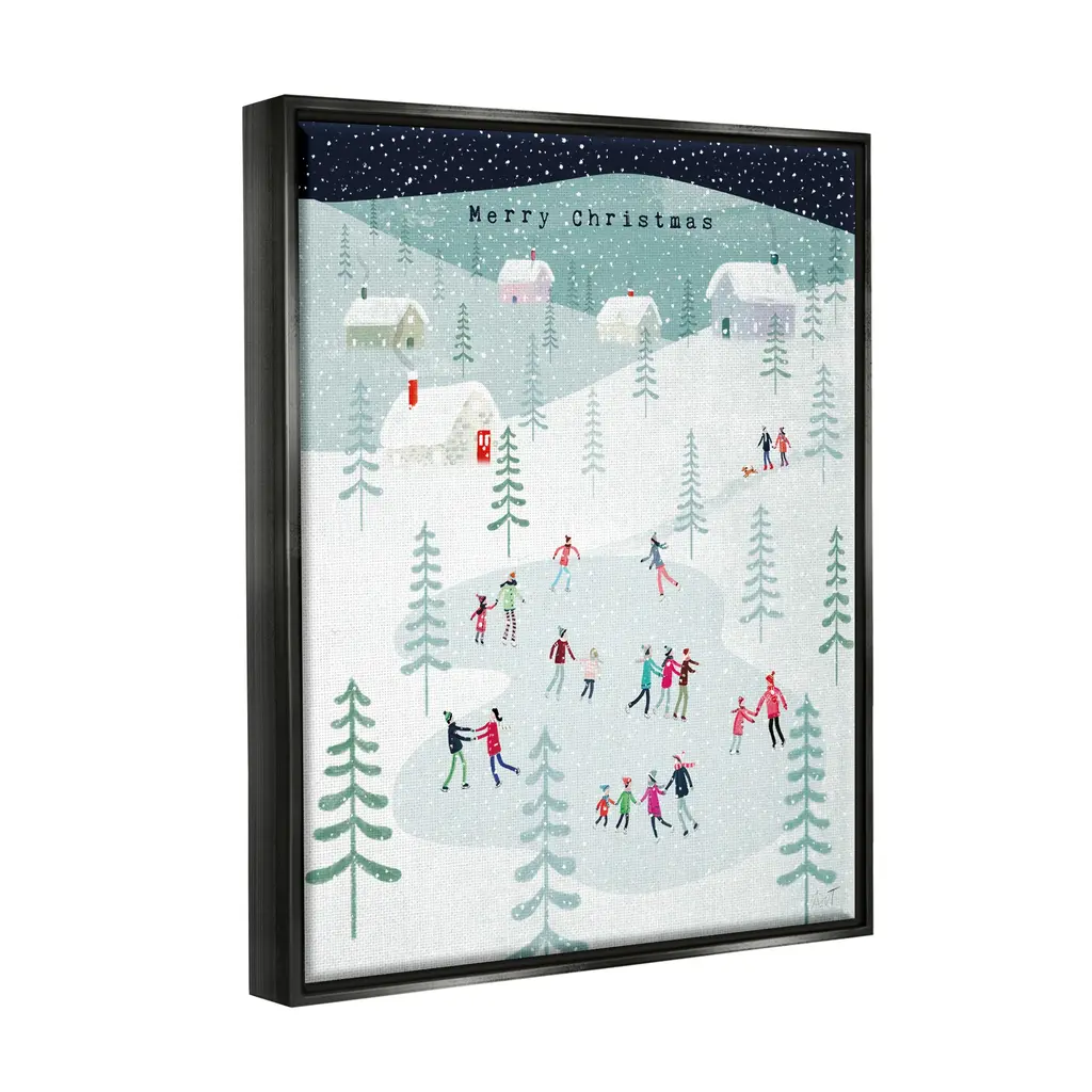 Elevate your home or office to the next level with Stupell Framed Floating Canvas Wall Art. Our premium hand-stretched canvas is mounted securely into a sturdy lightweight frame. The museum-style gap between the wrapped canvas and the box frame gives the illusion of floating artwork. Stupell Wall Art is made in the USA.Features: Dimensions: 17 x 1.7 x 21 Frame, 16 x 1.5 x 20 Canvas ArtFloating Frame Sizes Include Standard: 17 x 1.7 x 21 Oversized: 25 x 1.7 x 31Wall Art is Ready to Hang - No Installation or Hardware Needed. For Easy Set Up Lean or Layer Artwork on Shelf or Against Wall.Our elevated 1.7" Thick Floating Frame is the perfect complement to our canvas style Wall Art. We use only the highest quality inks in house with industry leading printing solutions. Canvas is hand stretched over a durable wood foundation and then mounted securly into a Modern Box Frame. Made in the USA.Artwork Relates To: Nature, Person, Snow, Winter, Ice Skating, Families, Scene, Merry ChristmasDesign by Andrew Thornton