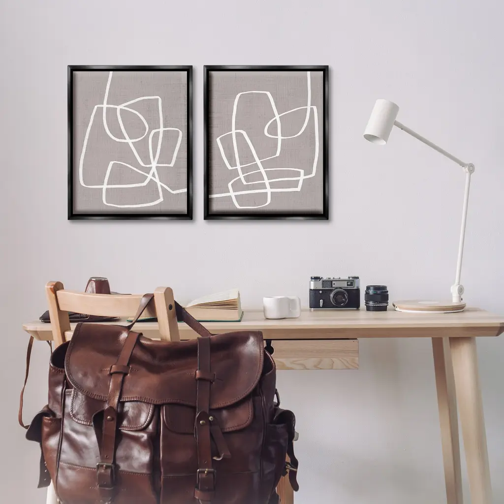 Elevate your home or office to the next level with Stupell Framed Floating Canvas Wall Art. Our premium hand-stretched canvas is mounted securely into a sturdy lightweight frame. The museum-style gap between the wrapped canvas and the box frame gives the illusion of floating artwork. Stupell Wall Art is made in the USA.Features: Dimensions: 2 Piece Set, Each Frame is 17 x 1.7 x 21Two Piece Floater Framed Canvas are available as 17x21 or 25x31 Panels. All Floater Frame Products have a 1.7" Depth.Wall Art is Ready to Hang with Hardware Free Hanging. No Installation required. For Easy Set Up Lean or Layer Artwork on Shelf or Against Wall. Artwork is Permently Fixed into the Frame.Our elevated 1.7" Thick Floating Frame is the perfect complement to our canvas style Wall Art. We use only the highest quality inks in house with industry leading printing solutions. Canvas is hand stretched over a durable wood foundation and then mounted securly into a Modern Box Frame. Made in the USA.Artwork Relates To: Abstract, Geometric, Modern, BohoDesign by June Erica Vess
