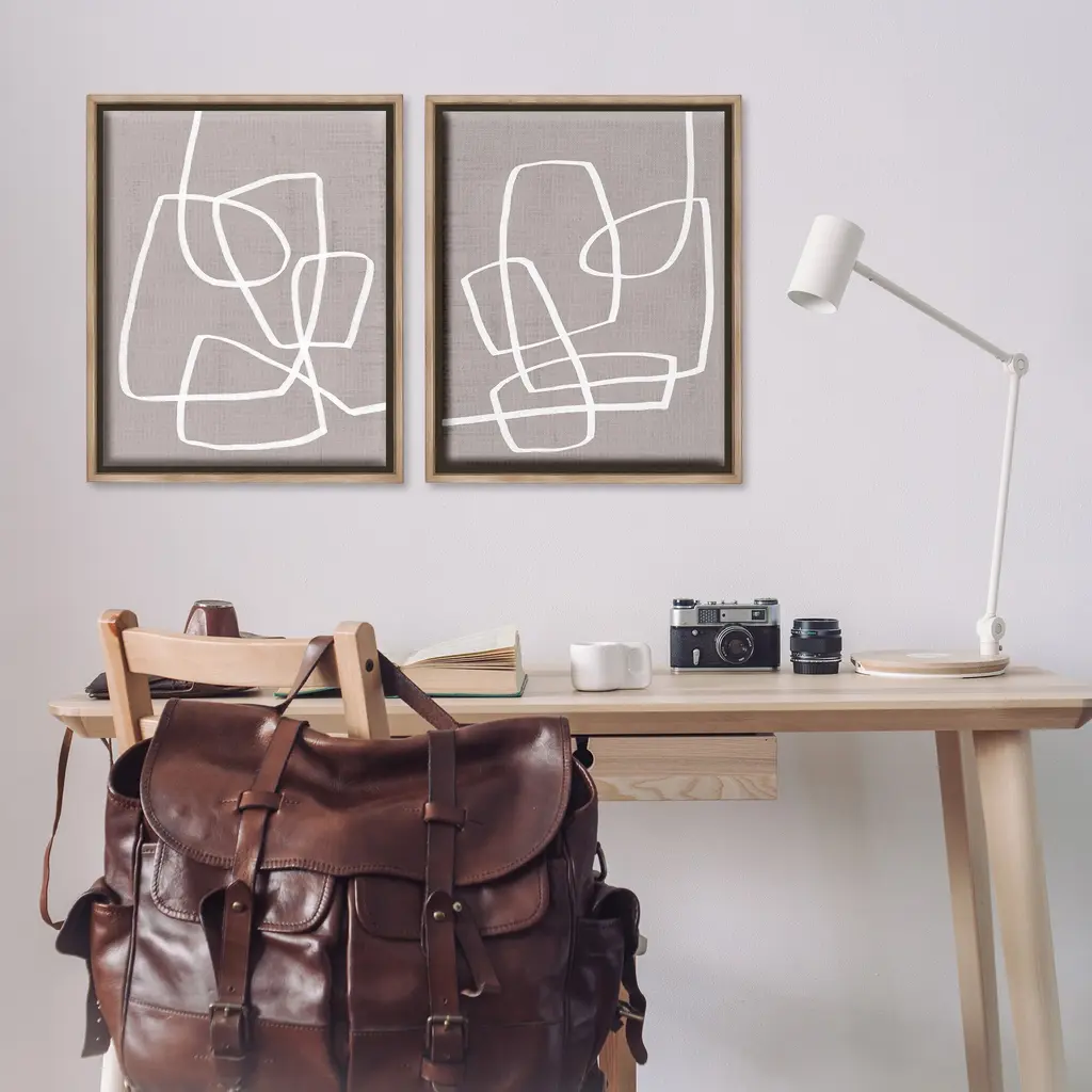 Elevate your home or office to the next level with Stupell Framed Floating Canvas Wall Art. Our premium hand-stretched canvas is mounted securely into a sturdy lightweight frame. The museum-style gap between the wrapped canvas and the box frame gives the illusion of floating artwork. Stupell Wall Art is made in the USA.Features: Dimensions: 2 Piece Set, Each Frame is 17 x 1.7 x 21Two Piece Floater Framed Canvas are available as 17x21 or 25x31 Panels. All Floater Frame Products have a 1.7" Depth.Wall Art is Ready to Hang with Hardware Free Hanging. No Installation required. For Easy Set Up Lean or Layer Artwork on Shelf or Against Wall. Artwork is Permently Fixed into the Frame.Our elevated 1.7" Thick Floating Frame is the perfect complement to our canvas style Wall Art. We use only the highest quality inks in house with industry leading printing solutions. Canvas is hand stretched over a durable wood foundation and then mounted securly into a Modern Box Frame. Made in the USA.Artwork Relates To: Abstract, Geometric, Modern, BohoDesign by June Erica Vess