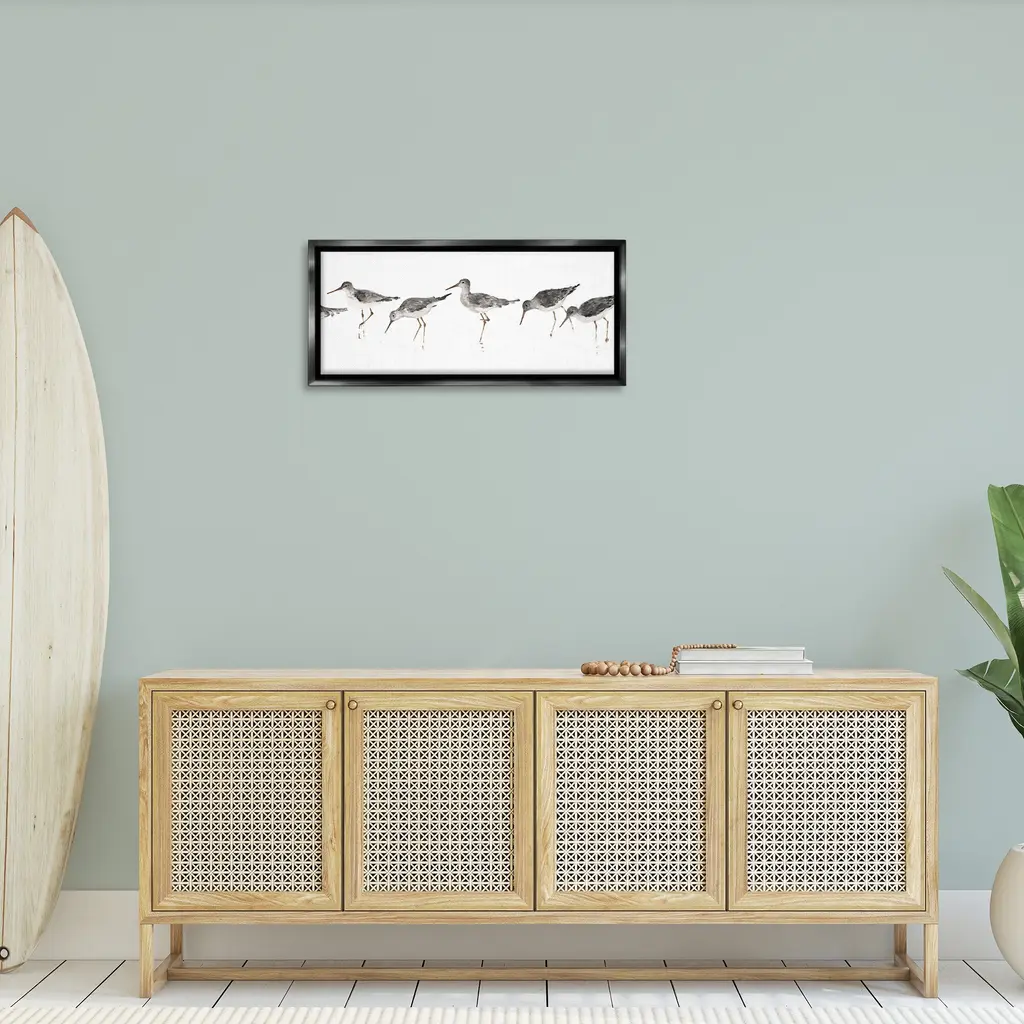 Elevate your home or office to the next level with Stupell Framed Floating Canvas Wall Art. Our premium hand-stretched canvas is mounted securely into a sturdy lightweight frame. The museum-style gap between the wrapped canvas and the box frame gives the illusion of floating artwork. Stupell Wall Art is made in the USA.Features: Dimensions: 25 x 1.7 x 11 Frame, 24 x 1.5 x 10 Canvas ArtFloating Frame Canvas Products are available in sizes 25"x11" and 31"x14". All Floating Frame Canvas Products have a 1.7" Depth.Wall Art is Ready to Hang with Hardware Free Hanging. No Installation required. For Easy Set Up Lean or Layer Artwork on Shelf or Against Wall. Artwork is Permently Fixed into the Frame.Our elevated 1.7" Thick Floating Frame is the perfect complement to our canvas style Wall Art. We use only the highest quality inks in house with industry leading printing solutions. Canvas is hand stretched over a durable wood foundation and then mounted securly into a Modern Box Frame. Made in the USA.Artwork Relates To: Animal, Bird, Sandpiper, Nautical, Coastal, BeachDesign by Avery Tillmore