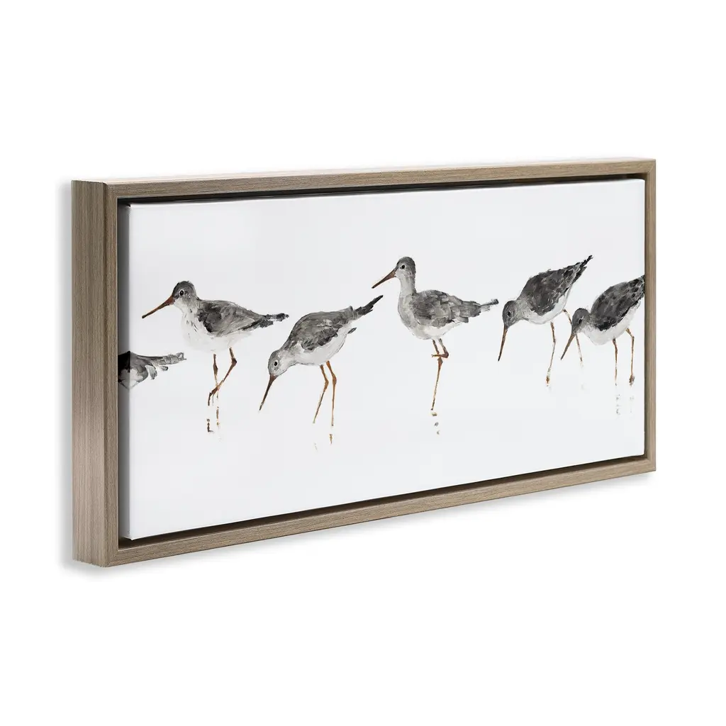 Elevate your home or office to the next level with Stupell Framed Floating Canvas Wall Art. Our premium hand-stretched canvas is mounted securely into a sturdy lightweight frame. The museum-style gap between the wrapped canvas and the box frame gives the illusion of floating artwork. Stupell Wall Art is made in the USA.Features: Dimensions: 25 x 1.7 x 11 Frame, 24 x 1.5 x 10 Canvas ArtFloating Frame Canvas Products are available in sizes 25"x11" and 31"x14". All Floating Frame Canvas Products have a 1.7" Depth.Wall Art is Ready to Hang with Hardware Free Hanging. No Installation required. For Easy Set Up Lean or Layer Artwork on Shelf or Against Wall. Artwork is Permently Fixed into the Frame.Our elevated 1.7" Thick Floating Frame is the perfect complement to our canvas style Wall Art. We use only the highest quality inks in house with industry leading printing solutions. Canvas is hand stretched over a durable wood foundation and then mounted securly into a Modern Box Frame. Made in the USA.Artwork Relates To: Animal, Bird, Sandpiper, Nautical, Coastal, BeachDesign by Avery Tillmore