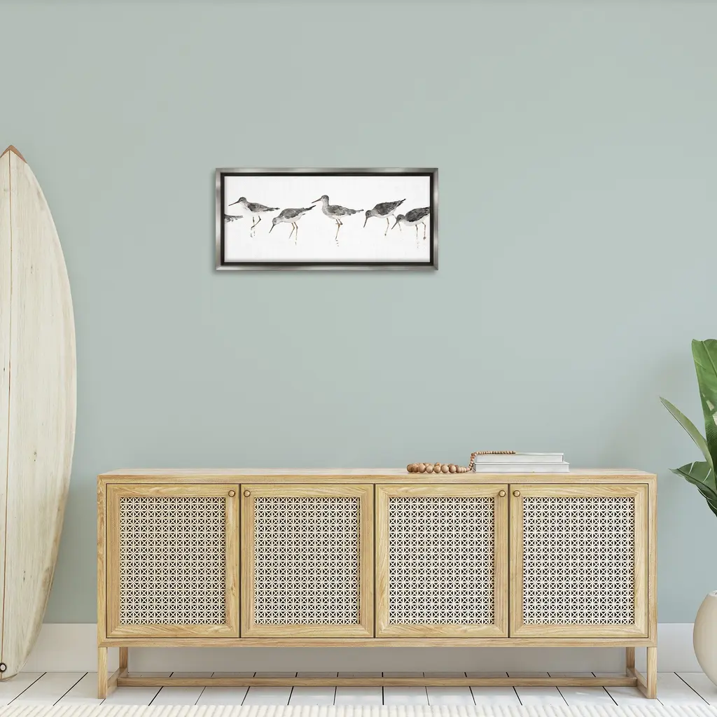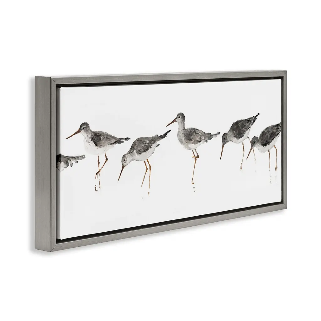 Stupell Minimal Beach Bird Sandpipers Framed Floater Canvas Wall Art Design By Avery Tillmore - 31 X 14 - Grey