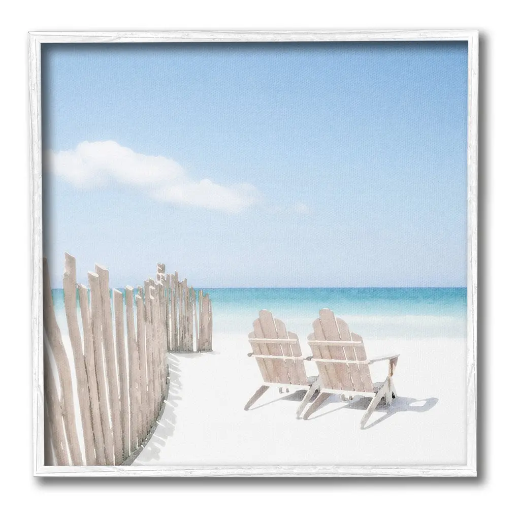 Add dimension to any room with our textured Framed Giclee Artwork. Our framed artwork is securely mounted into a 1.5-inch thick wood grain frame and ready to hang. Frames are available in three alluring styles: black, gray farmhouse and white. In addition, you should check out our oversized options if you want a statement piece. Stupell Wall Art is made in the USA.Features: Dimensions: 12 x 1.5 x 12 FramedFramed Giclee Product Sizes Include 12"x12", 17"x17", and 24"x24". Framed Giclee Products have a 1.5" Depth. Wall Art is Ready to Hang with Hardware Free Hanging. No installation required. For Easy Set Up Lean or Layer Artwork on Shelf or Against Wall.Our giclée prints are carefully mounted on a durable MDF backing, and then perfectly finished in a 1.5 inch thick woodgrain frame. Mounted frame colors include black, gray farmhouse and white. Made In USA.Artwork Relates To: Beach, Coast, Sea, Shoreline, Water, Scenery, Sky, Landscape, Horizon, Sea Waves, Nautical, Beach Chair, FenceDesign by Noah Bay