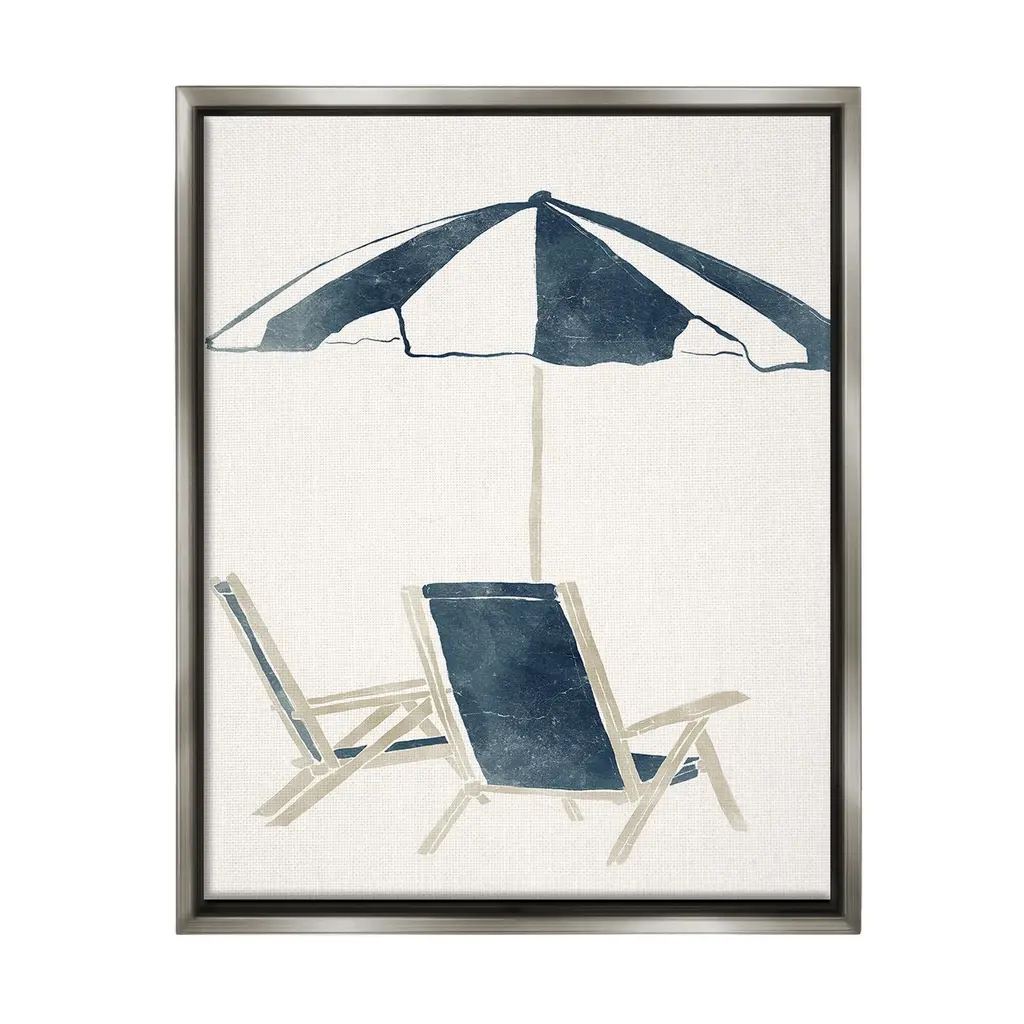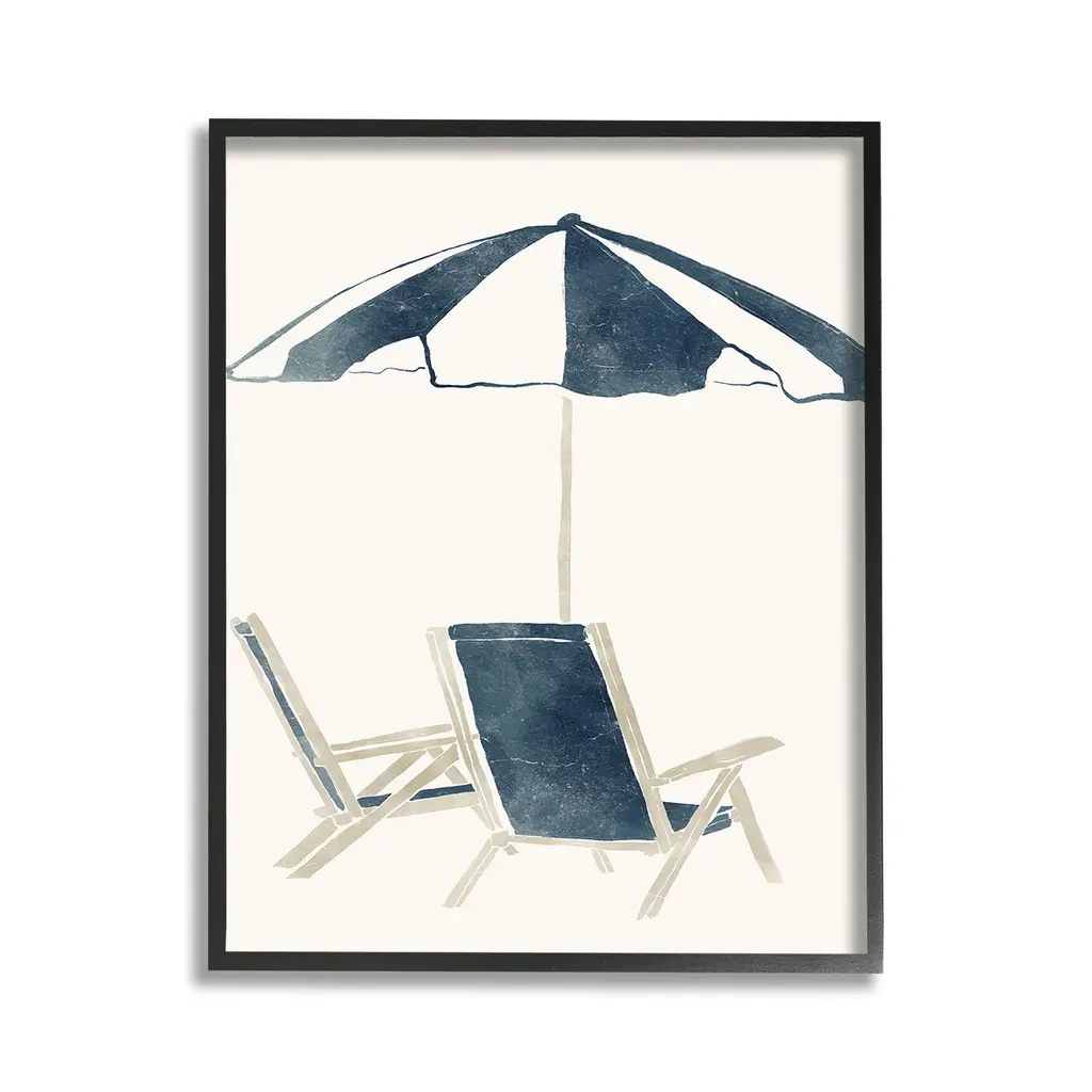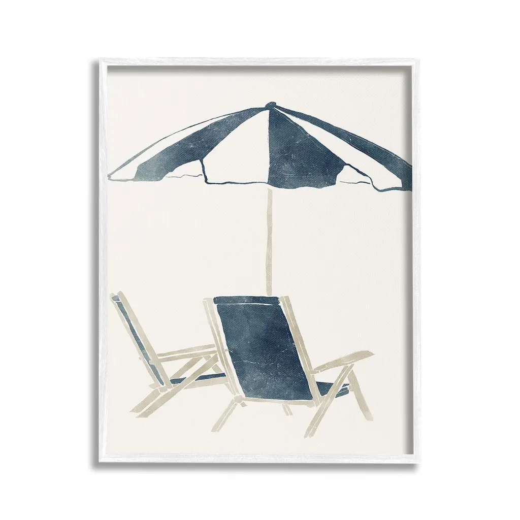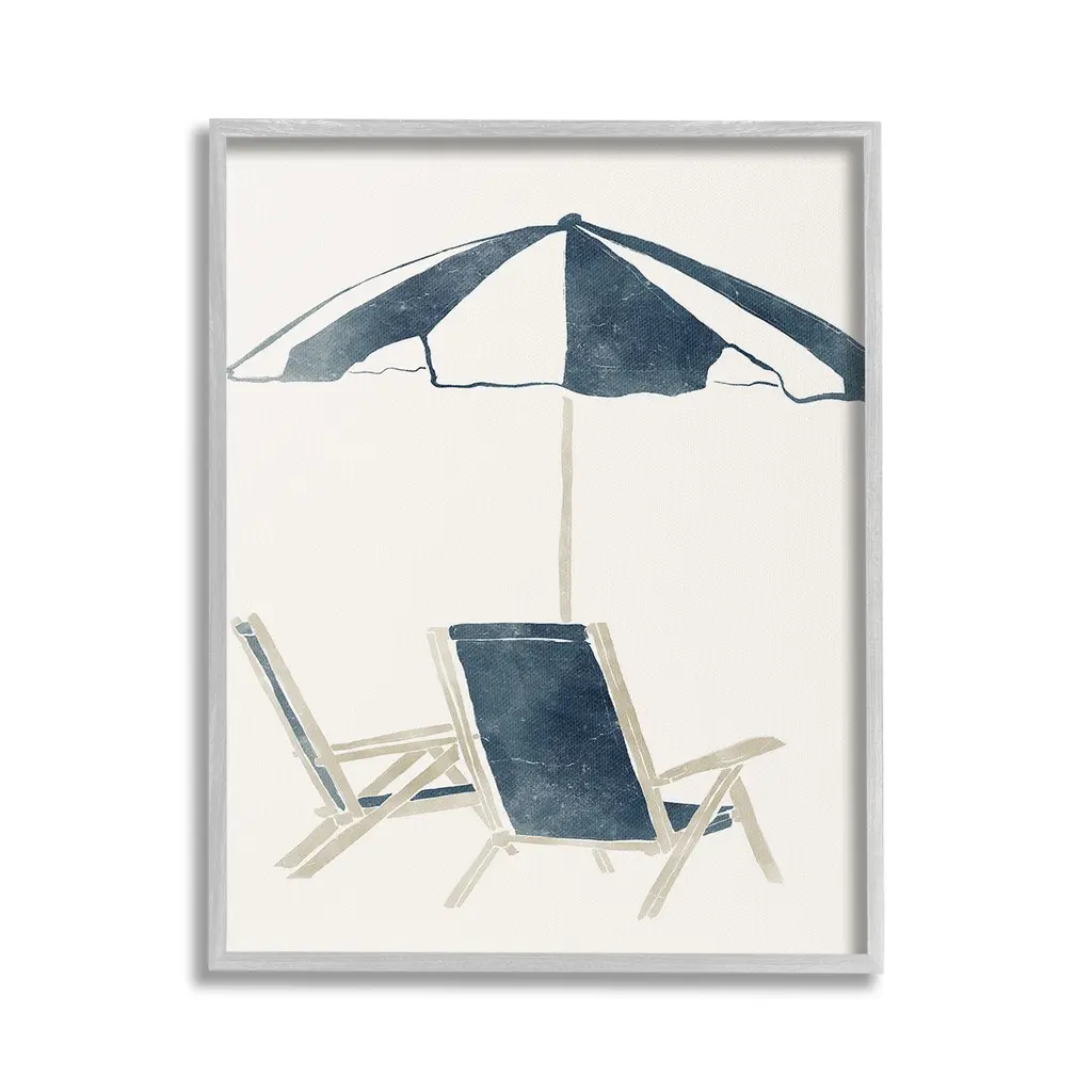 Add dimension to any room with our textured Framed Giclee Artwork. Our framed artwork is securely mounted into a 1.5-inch thick wood grain frame and ready to hang. Frames are available in three alluring styles: black, gray farmhouse and white. In addition, you should check out our oversized options if you want a statement piece. Stupell Wall Art is made in the USA.Features: Dimensions: 11 x 1.5 x 14 FramedFramed Giclee Products are available in the sizes 11"x14", 16"x20" or 24"x30". All Framed Giclee Products have a 1.5" Depth. Wall Art is Ready to Hang with Hardware Free Hanging. No installation required. For Easy Set Up Lean or Layer Artwork on Shelf or Against Wall.Our giclée prints are carefully mounted on a durable MDF backing, and then perfectly finished in a 1.5 inch thick woodgrain frame. Mounted frame colors include black, gray farmhouse and white. Made In USA.Artwork Relates To: Beach Umbrella, Nautical, Beach, Minimal, Chair, Lounge, BohoDesign by Yuyu Pont