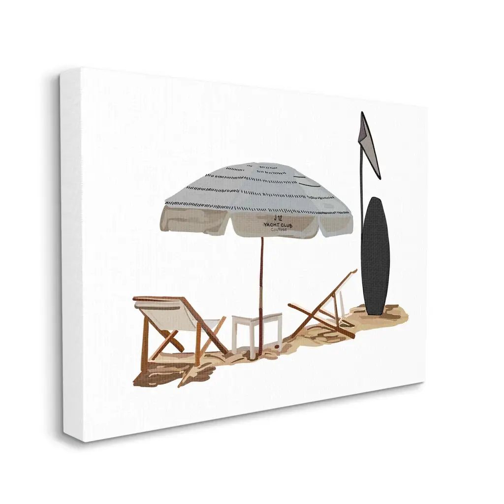 We create our stretched canvas to the highest standards. Using only the highest quality inks and canvas on Mimaki printers, we hand-cut and stretch each piece over a 1.5-inch thick wooden frame for hanging. As a result, the art comes ready to hang on the sturdy ledge with no installation required. Stupell Wall Art is made in the USA.Features: Dimensions: 20 x 1.5 x 16 InchesStretched Canvas Sizes Include Standard: 20 x 1.5 x 16 Large: 30 x 1.5 x 20 X-Large: 40 x 1.5 x 30 Oversized: 48 x 1.5 x 36Wall Art is Ready to Hang with Hardware Free Hanging. No installation required. For Easy Set Up Lean or Layer Artwork on Shelf or Against Wall.Our stretched canvas is created with the highest standards. We use only the highest quality inks and canvas on our in house Mimaki printers, and then hand cut and stretch each piece over a 1.5 inch thick wooden frame for hanging. Made In USA.Artwork Relates To: Beach, Summer, Shore, Modern, SurfboardDesign by Amelia Noyes